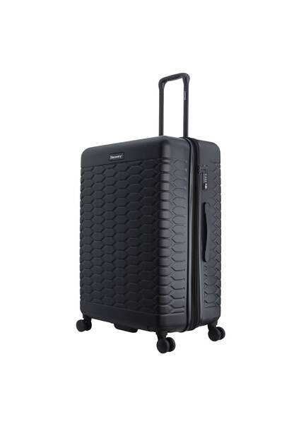 Walizka klasy premium z serii Reptile marki Discovery cechuje się prostym dsignem i bardzo wysoką jakością materiałów z których została wykonana - wytrzymała i odporna na uszkodzenia lekka konstrukcja ABS. Posiada cztery podwójne wysokiej jakości kółka obracane o 360 stopni, stelaż aluminiowy z regulowaną wysokością(z przyciskiem blokującym) oraz płaski zamek szyfrowy TSA dzięki czemu jest świetnym rozwiązaniem dla osób, które dużo czasu spędzają w podróży i cenią sobie wygodę oraz bezpieczeństwo swojego bagażu. Wnętrze walizki posiada pasy zabezpieczające, które zapobiegają przemieszczaniu się zawartości bagażu oraz pełną, zapinaną na suwak komorę wraz z podszewką klasy premium.