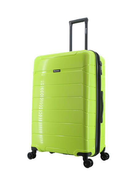 Walizka klasy premium z serii Skyward marki Discovery cechuje się nowoczesnym designem i bardzo wysoką jakością materiałów z których została wykonana - wytrzymała i odporna na uszkodzenia lekka konstrukcja z Polipropylenu to gwarancja wytrzymałości i zadowolenia. Walizka posiada cztery podwójne wysokiej jakości kółka obracane o 360 stopni, stelaż aluminiowy z regulowaną wysokością (z przyciskiem blokującym) oraz płaski zamek szyfrowy TSA dzięki czemu jest świetnym rozwiązaniem dla osób, które dużo czasu spędzają w podróży i cenią sobie wygodę oraz bezpieczeństwo swojego bagażu. Wnętrze walizki posiada pasy zabezpieczające, które zapobiegają przemieszczaniu się zawartości bagażu oraz pełną, zapinaną na suwak komorę wraz z podszewką klasy premium.