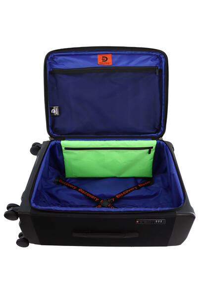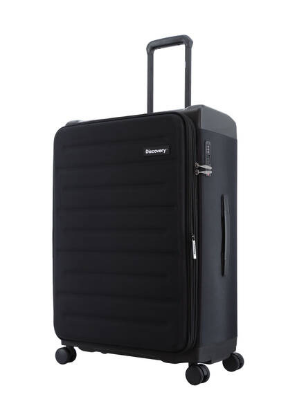 Walizka klasy premium z serii Motion marki Discovery cechuje się nowoczesnym i nietypowym designem oraz bardzo wysoką jakością materiałów z których została wykonana - wytrzymała i odporna na uszkodzenia lekka konstrukcja z Polipropylenu a wykończenie z poliestru to gwarancja wytrzymałości i zadowolenia użytkowników. Walizka posiada cztery podwójne wysokiej jakości kółka obracane o 360 stopni, stelaż aluminiowy z regulowaną wysokością (z przyciskiem blokującym) oraz płaski zamek szyfrowy TSA dzięki czemu jest świetnym rozwiązaniem dla osób, które dużo czasu spędzają w podróży i cenią sobie wygodę oraz bezpieczeństwo swojego bagażu. Wnętrze walizki posiada pasy zabezpieczające, małą kieszonkę zamykaną na suwak oraz specjalną przestrzeń na laptopa do którego mamy dostęp z zewnątrz.