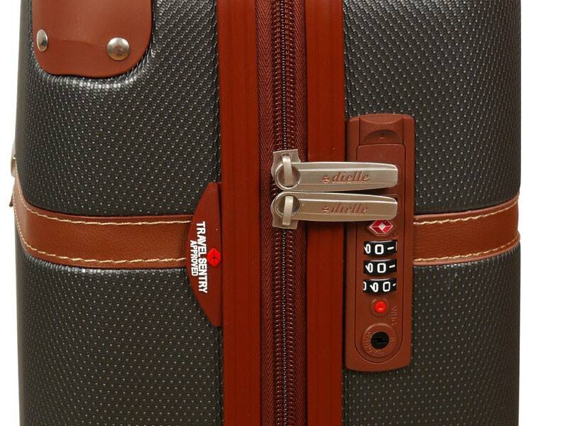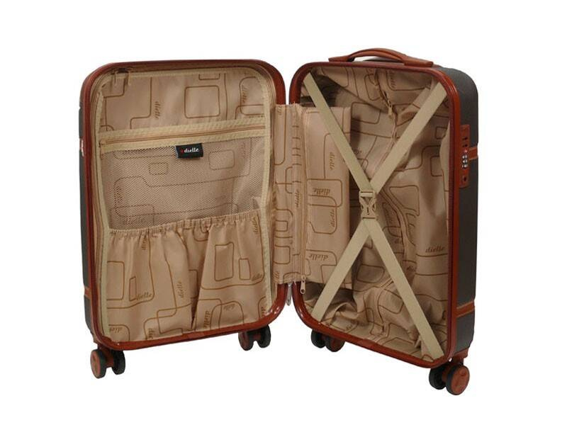 Mała walizka włoskiej marki Dielle z kolekcji 160. Korpus wykonany z wytrzymałego i trwałego ABS-u. Wygodny uchwyt góry ułatwia umieszczenie jej w bagażniku auta lub zdjęcie z lotniskowego transportera. Cztery podwójne, osiowo obrotowe kółka gwarantują komfort przemieszczania się.  Wysuwany teleskopowo , regulowany stelaż. Eleganckie wstawki z eko skóry podkreślają niepowtarzalny wygląd tej kolekcji. Przewożoną zawartość chroni zamek szyfrowy w standardzie TSA. Wnętrze wyłożone elegancką podszewką, jedna część wyposażona w pasy do mocowania przewożonego bagażu a druga część wydzielona materiałową przegrodą z dodatkowymi kieszeniami. Walizka charakteryzuje się wyjątkowym wyglądem oraz jakością wykonania. Wymiary walizki spełniają normy bagażu kabinowego większości linii lotniczych.