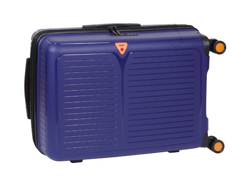 Średnia walizka włoskiej marki Dielle z kolekcji 140. Korpus wykonany z polipropylenu. Wygodne uchwyty z boku i u góry ułatwiają umieszczenie jej bagażniku auta lub zdjęcie z lotniskowego transportera. Cztery podwójne obrotowe kółka gwarantują komfort przemieszczania się. Regulowany wysuwany teleskopowo stelaż. Przewożoną zawartość chroni zamek szyfrowy w standardzie TSA. Dodatkowym atutem tej kolekcji jest możliwość poszerzenia walizki o około dodatkowe 5 centymetrów dzięki specjalnemu suwakowi. Wnętrze wyłożone elegancką podszewką, jedna część wyposażona w pasy do mocowania przewożonego bagażu a druga część wydzielona materiałową przegrodą z dodatkowymi kieszeniami. Walizka charakteryzuje się wyjątkowym wyglądem oraz jakością wykonania.