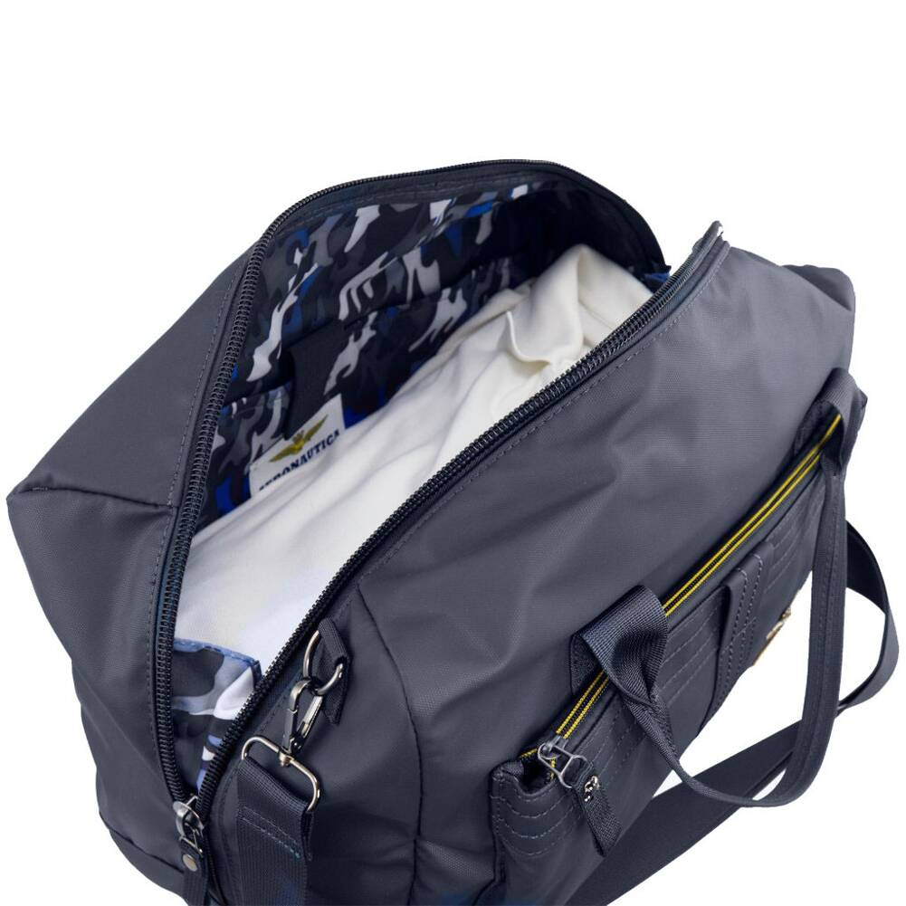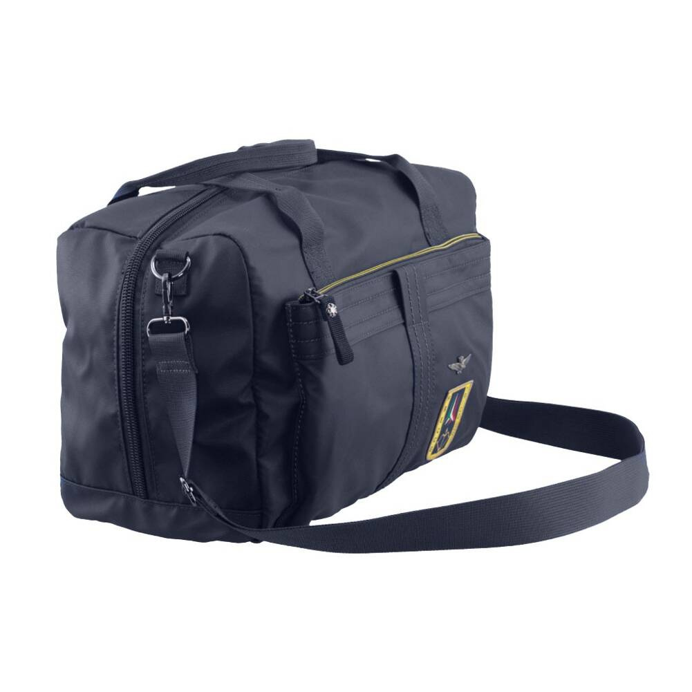 Torba podróżna podręczna o pojemności 18 litrów włoskiej marki Aeronautica Militare z kolekcji Frecce. Doskonale sprawdzi się w codziennym użytkowaniu do przenoszenia najpotrzebniejszych rzeczy. Wykonana ze specjalnej gumowanej tkaniny technicznej o podwyższonych parametrach odporności na przemakanie. Wyrób cechuje niepowtarzalny styl i wyjątkowe walory użytkowe.Szczegóły torby:komora główna zamykana na suwak2 duże uchwyty do przenoszenia torby w ręcewymienna zawieszka/breloczek do kluczyduża przednia kieszeńduża kieszeń z tyłuodpinany pasek na ramię z karabińczykami, regulowany w zakresie 80 - 150 cmpodszewka z wzorem moro wykonana z poliestrumetalowe detale i emblemat Włoskich Sił Powietrznych oraz wytłoczone logo markiz przodu metalowy emblemat włoskich Sił Powietrznych. oraz materiałowa plakietka „FRECCE TRIVOLORI”