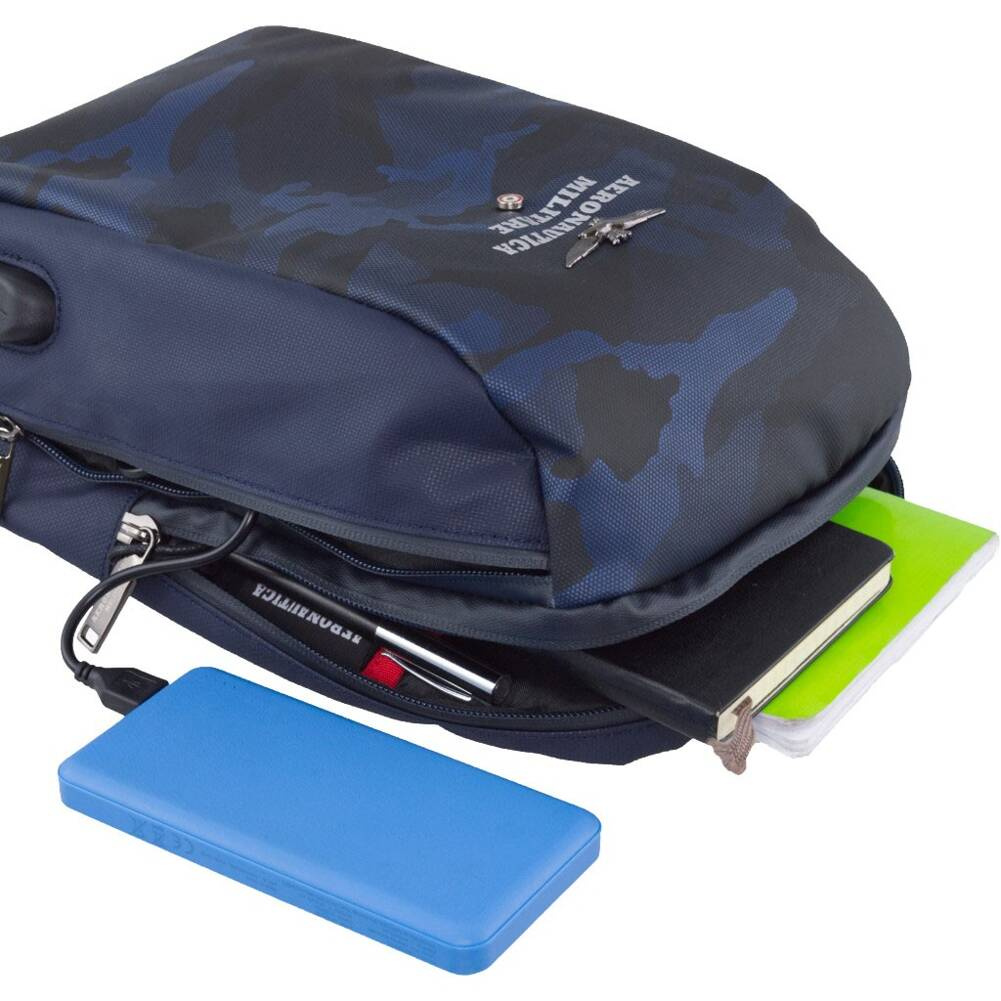 Plecak na jedno ramię o pojemności 5 litrów włoskiej marki Aeronautica Militare z kolekcji Camou. Wykonany ze specjalnej gumowanej tkaniny technicznej o podwyższonych parametrach odporności na przemakanie. Doskonale sprawdzi się w codziennym użytkowaniu do przechowywania niezbędnych rzeczy. Torba z serii zainspirowanej militariami i kamuflażem.Wyrób cechuje niepowtarzalny styl i wyjątkowe walory użytkowe.Szczegóły plecaka:komora główna zamykana na suwak,przegroda dedykowana na tablet,kieszeń termiczna, świetna do przechowywania np. butelki z wodą, przekąsek,2 możliwości noszenia: jako plecak na jedno ramię lub po rozsunięciu suwaka jak zwykły plecak,zewnętrzny port USBorganizer wewnętrzny,wyściełany panel tylny z siateczką umożliwiającą swobodny przepływ powietrza,regulowane szelki/szelka do noszenia,podszewka z wzorem moro, wykonana z poliestrumetalowe detale i emblemat Włoskich Sił Powietrznych oraz wytłoczone logo marki