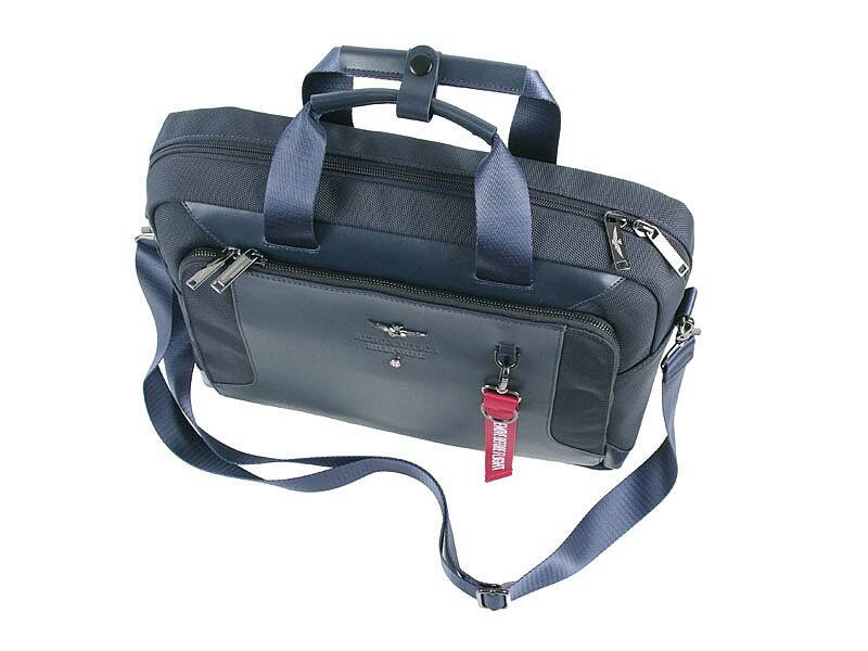 Torba na laptopa do 15' włoskiej marki Aeronautica Militare z kolekcji Bolt. Wykonana z wysokiej jakości skóry ekologicznej oraz tkaniny technicznej o zwiększonych parametrach na warunki atmosferyczne. Doskonale sprawdzi się w codziennym użytkowaniu, chroniąc Twojego laptopa oraz do przenoszenia najpotrzebniejszych rzeczy. Wyrób cechuje niepowtarzalny styl i wyjątkowe walory użytkowe.Szczegóły torby:komora główna zamykana na suwakwyścielana przegroda na laptopa o rozmiarze do 15 caliprzednia,duża kieszeń z panelem organizacyjnymmożliwość mocowania na stelażu walizkidwa uchwyty do noszenia w ręce z możliwością złączenia na zatrzaskodpinany i regulowany w zakresie 80 - 150 cm pasek na ramię gwarantujący maksymalny komfort noszenia.wewnętrzne kieszenie zamykane na suwakduża przestrzeń wewnętrzna pozwala na swobodną organizację dokumentów oraz innych rzeczyduży brelok z napisem "Remove before flight" nadaje produktowi wyjątkowy charakter.wysokiej jakości podszewka wykonana z poliestrumetalowe detale i emblemat Włoskich Sił Powietrznych oraz wytłoczone logo marki.