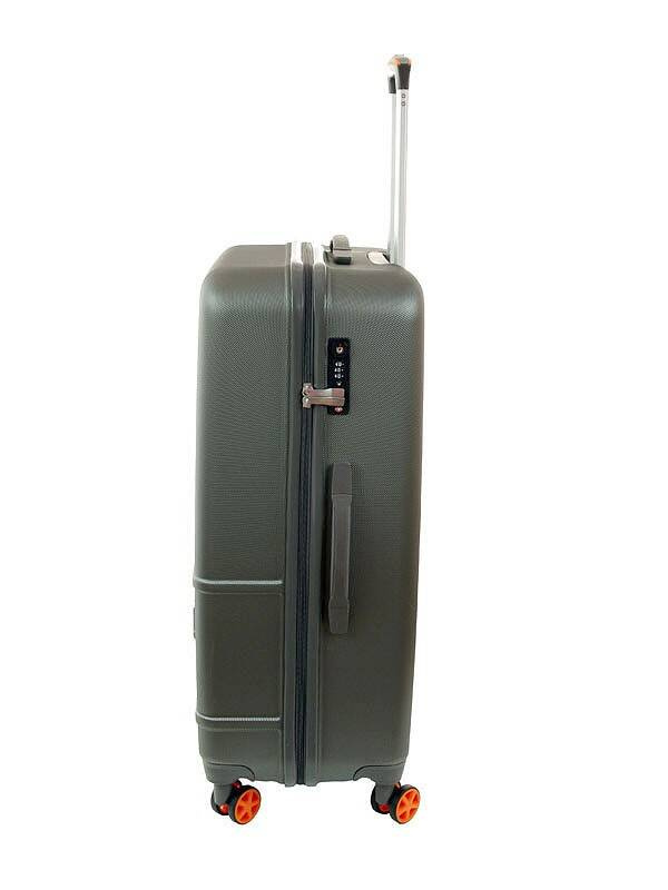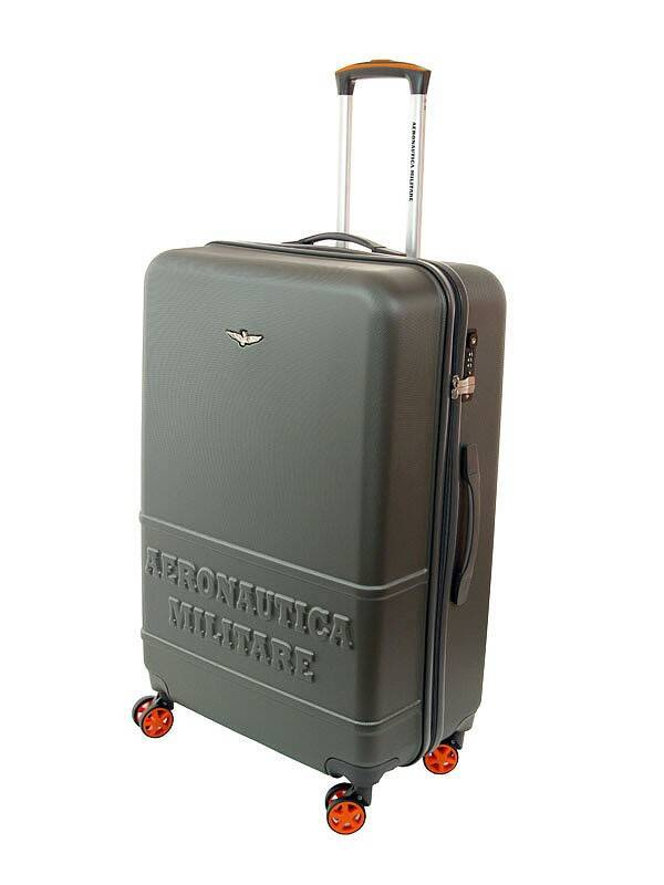 Duża walizka włoskiej marki Aeronautica Militare z kolekcji Force. Korpus wykonany z bardzo wytrzymałego tworzywa ABS zapewnia doskonałą ochronę Twoich rzeczy przed uszkodzeniami w trakcie podróży. Wygodne uchwyty z boku i u góry ułatwiają umieszczenie jej w bagażniku auta lub zdjęcie z lotniskowego transportera. Cztery podwójne, osiowo obrotowe kółka gwarantują komfort przemieszczania się. Wysuwany teleskopowo , lekki , regulowany stelaż ułatwiający manewrowanie. Przewożoną zawartość chroni zamek szyfrowy w standardzie TSA. Wnętrze wyłożone elegancką podszewką, jedna część wyposażona w pasy do mocowania przewożonego bagażu a druga część wydzielona materiałową przegrodą z dodatkowymi kieszeniami pomagają w utrzymaniu porządku i organizacji wewnątrz walizki. Walizka charakteryzuje się wyjątkowym wyglądem oraz jakością wykonania.