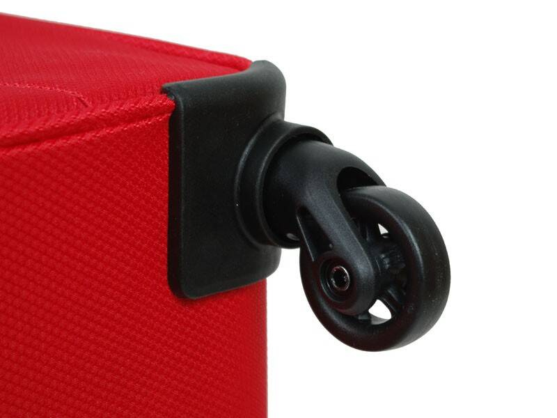 4 koła kręcące się wokół własnej osi dają nam komfort prowadzenia w najwygodniejszy dla nas sposób , można ją ciągnąć lub pchać węższym lub szerszym bokiem.
