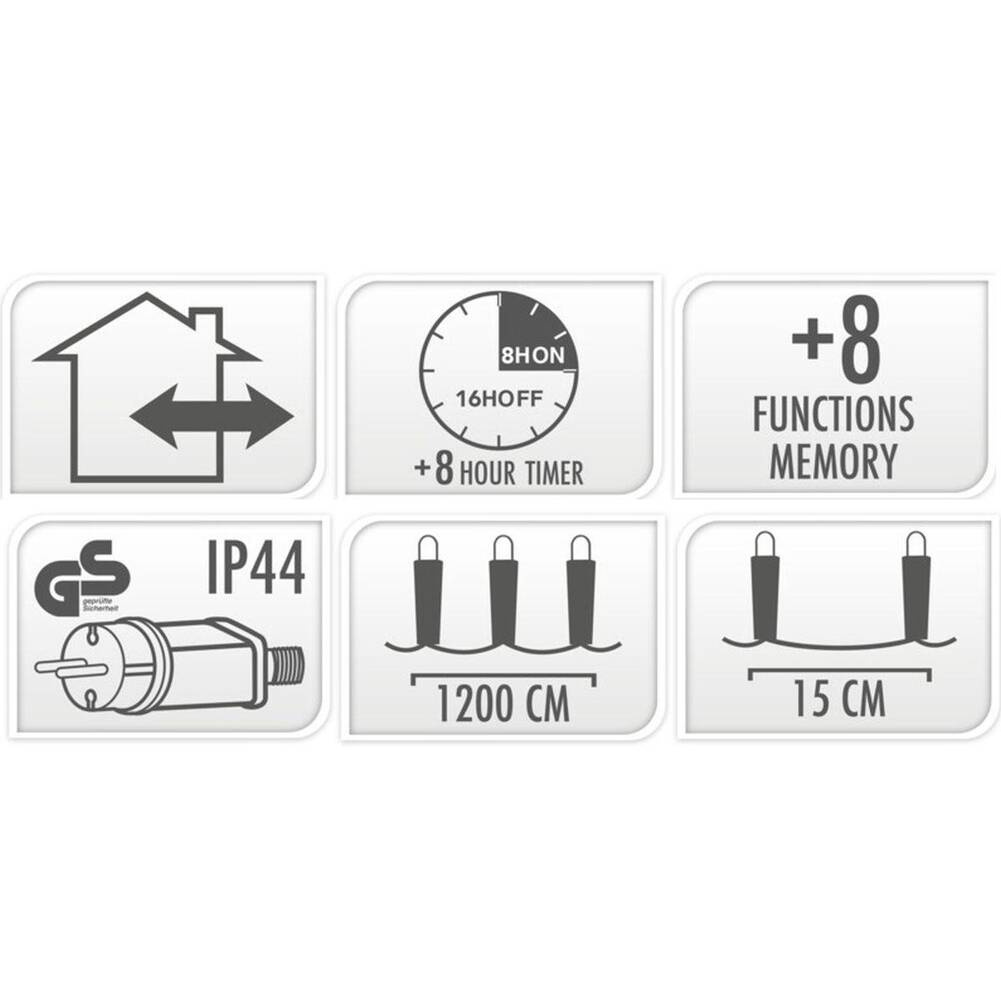 Funkcja timera sprawi, że po jego aktywacji łańcuch powtarzalnie świeci przez 8 godzin, a następnie wyłącza się na 16 godzin. Można go w każdej chwili zresetować przytrzymując przycisk na wtyczce przez parę sekund (zielone światełko timer działa).