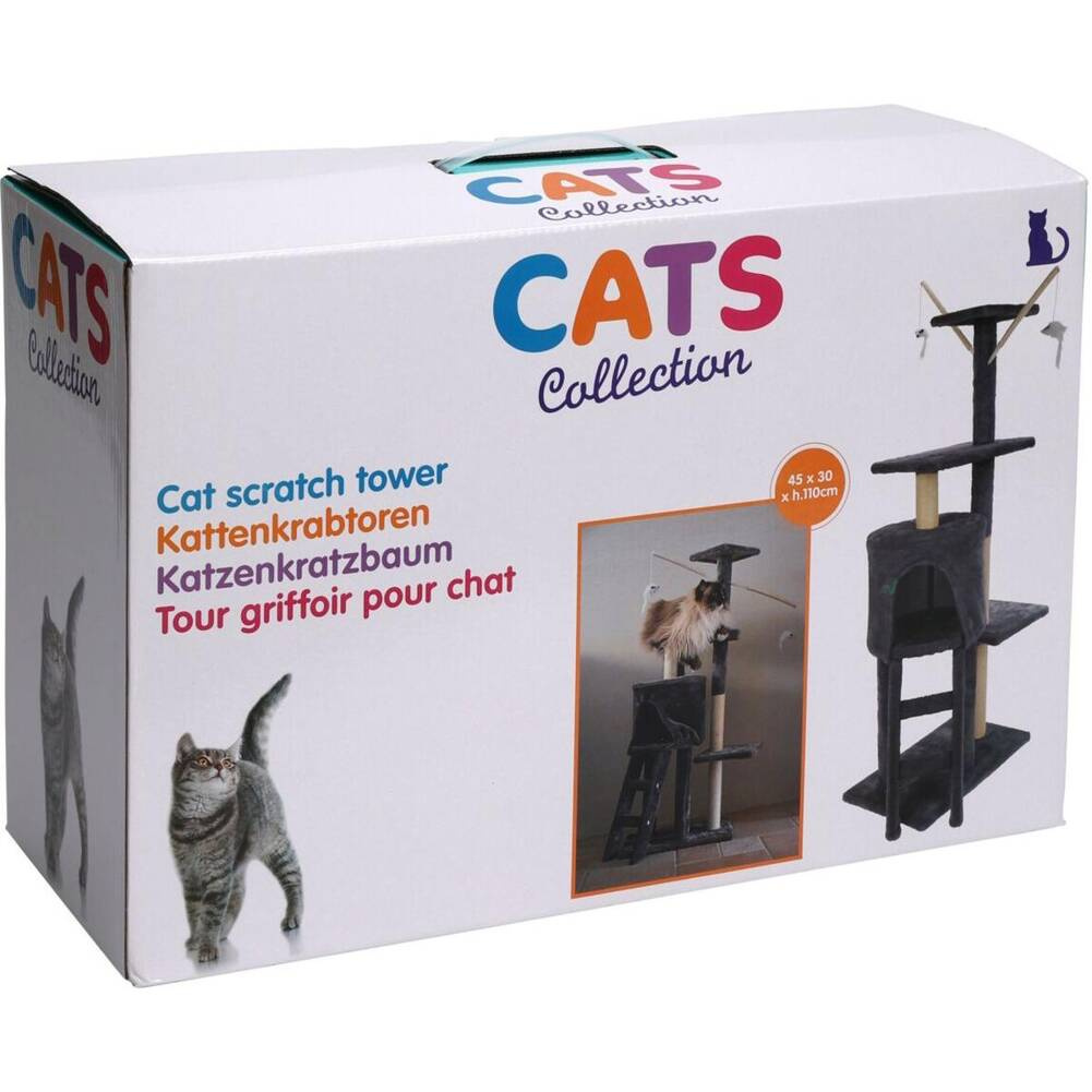 DRAPAK DLA KOTA WIEŻA 45X30X110CM to idealne obserwatorium dla Twojego zwierzaka, drapak do pazurków i koci plac zabaw, na którym Twój pupil na pewno będzie się dobrze bawił. Może się wspinać, skakać, obserwować i relaksować się.