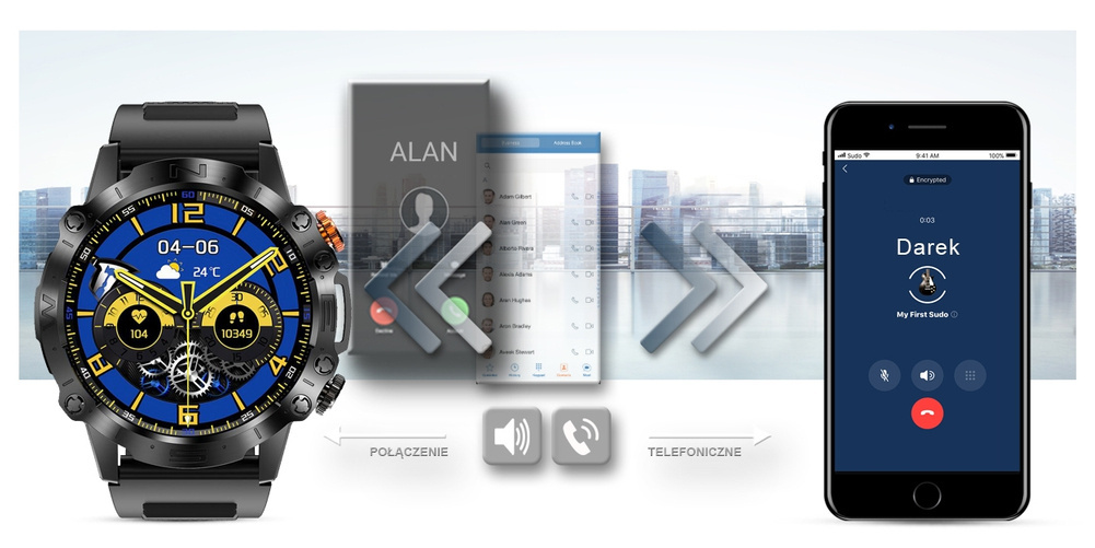 Po sparowaniu smartwatcha z twoim smartfonem, możesz bezproblemowo odbierać i wykonywać połączenia telefoniczne. Wbudowany głośnik oraz mikrofon pozwala rozmawiać bez konieczności wyciągania telefonu komórkowego.
