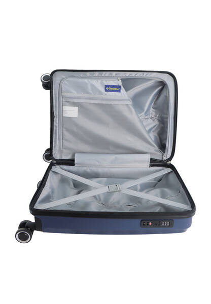 Bardzo dobrze sprawdzi się w podróży - cztery podwójne kółka, rączka górna, wysuwana i blokowana rączka na stelażu, płaski zamek szyfrowy, wewnętrzna komora na suwak i druga z pasami przytrzymującymi bagaż sprawi, że podróż która zaczyna się od pakowania będzie od początku przyjemnością.