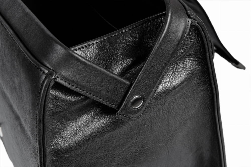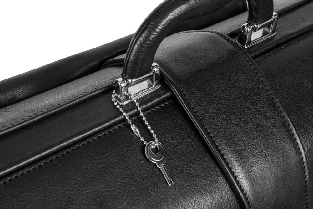 - Wygodny uchwyt do noszenia kufra w ręku wykonany z grubych warstw skóry