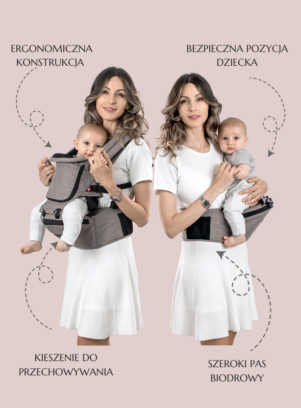 Ergonomiczna konstrukcja naszego innowacyjnego nosidła dla dziecka zapewnia, że biodra Twojego dziecka zawsze znajdują się w optymalnej pozycji siedzącej „M”, a kolana nawet na poziomie bioder.