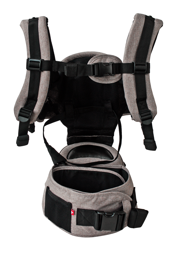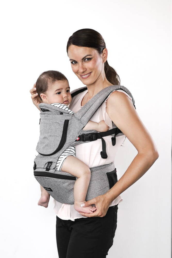 Również rodzice mogą czuć się komfortowo dzięki szerokiemu pasowi zapewniającemu pełne podparcie odcinka lędźwiowego. Nosidło oferuje 6 różnych opcji noszenia, wiele funkcji bezpieczeństwa i dodatkowe miejsce do przechowywania niezbędnych rzeczy.