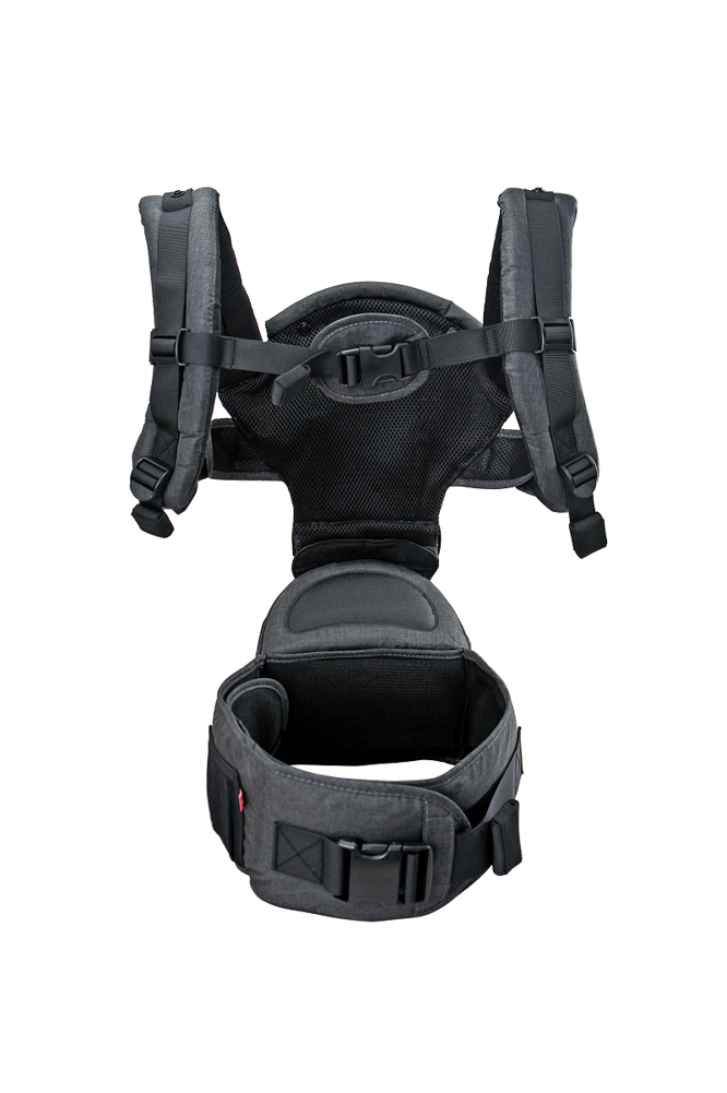Również rodzice mogą czuć się komfortowo dzięki szerokiemu pasowi zapewniającemu pełne podparcie odcinka lędźwiowego. Nosidło oferuje 6 różnych opcji noszenia, wiele funkcji bezpieczeństwa i dodatkowe miejsce do przechowywania niezbędnych rzeczy.