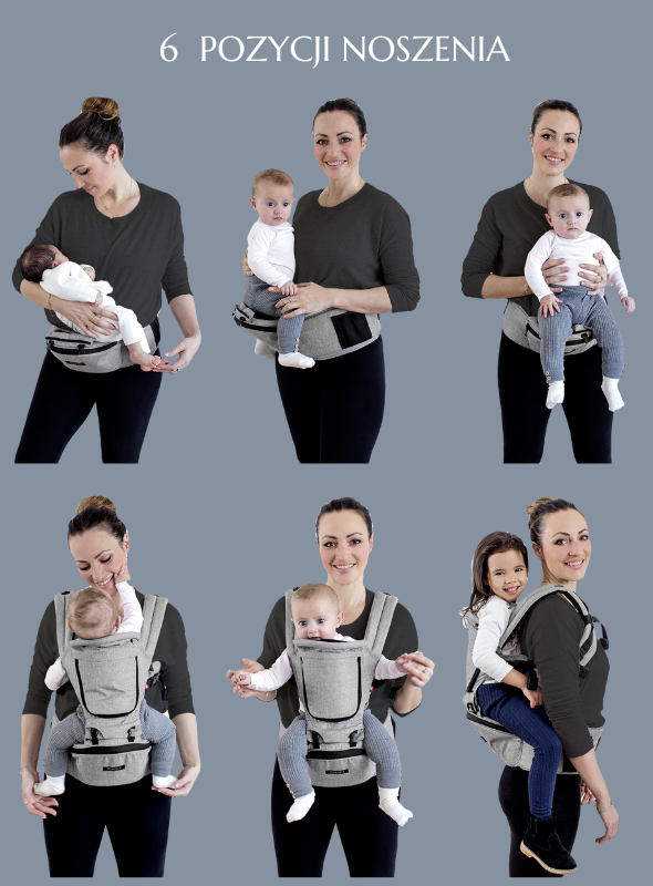 6 WYJĄTKOWYCH POZYCJI NOSZENIA: Możesz wygodnie trzymać dziecko w sześciu oddzielnych pozycjach noszenia.