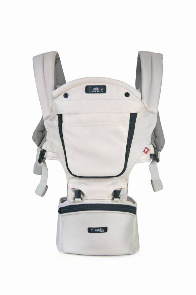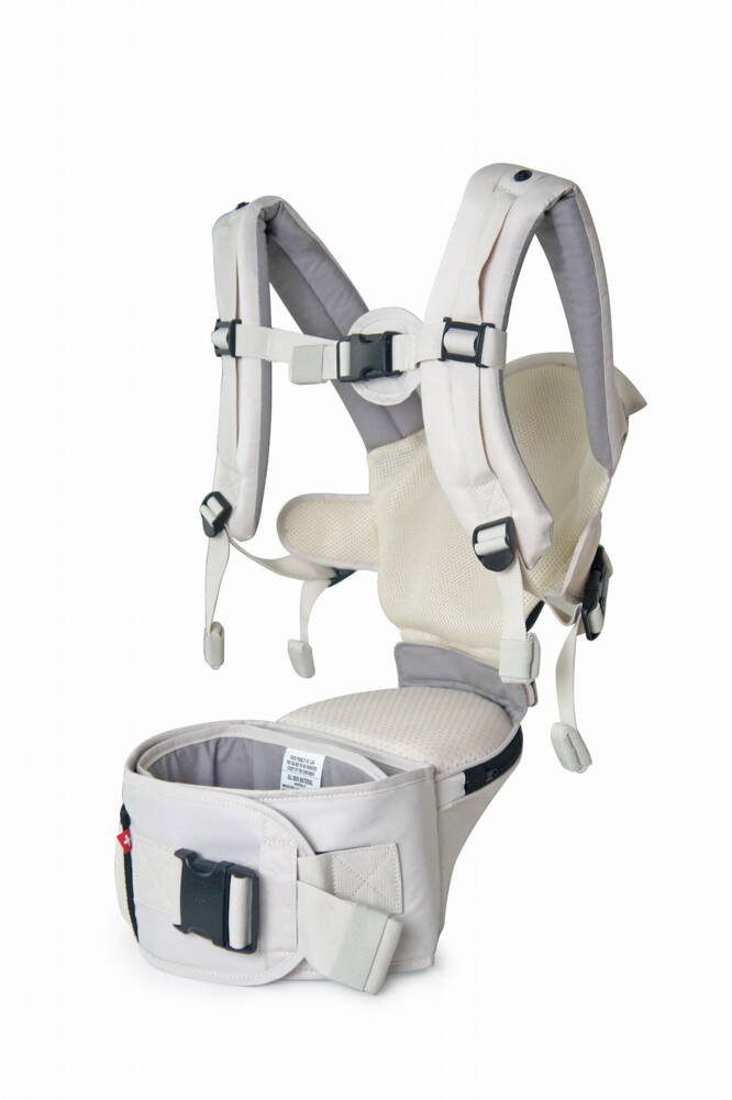 Również rodzice mogą czuć się komfortowo dzięki szerokiemu pasowi zapewniającemu pełne podparcie odcinka lędźwiowego. Nosidło oferuje 6 różnych opcji noszenia, wiele funkcji bezpieczeństwa i dodatkowe miejsce do przechowywania niezbędnych rzeczy.