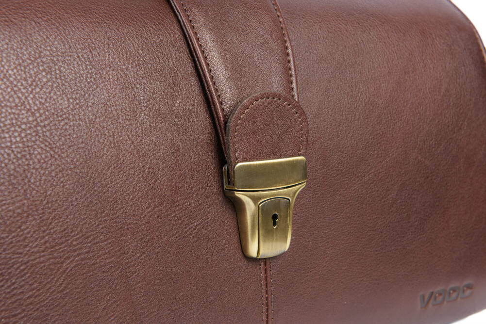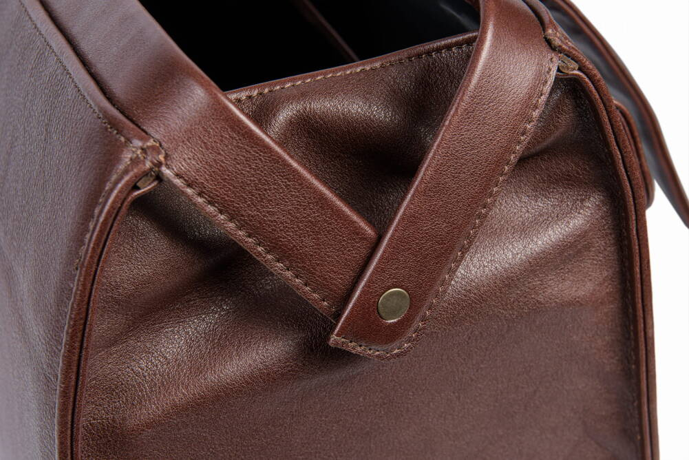 • Wygodny uchwyt do noszenia kufra w ręku wykonany z grubych warstw skóry