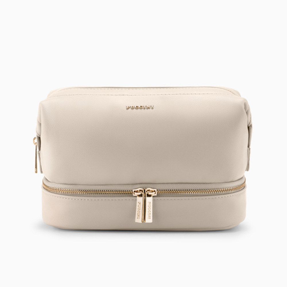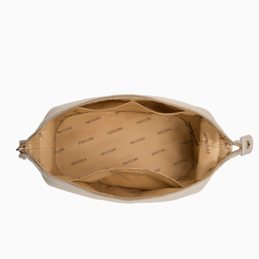 - po bokach zatrzaski, odpięte, powiększają pojemność kosmetyczki