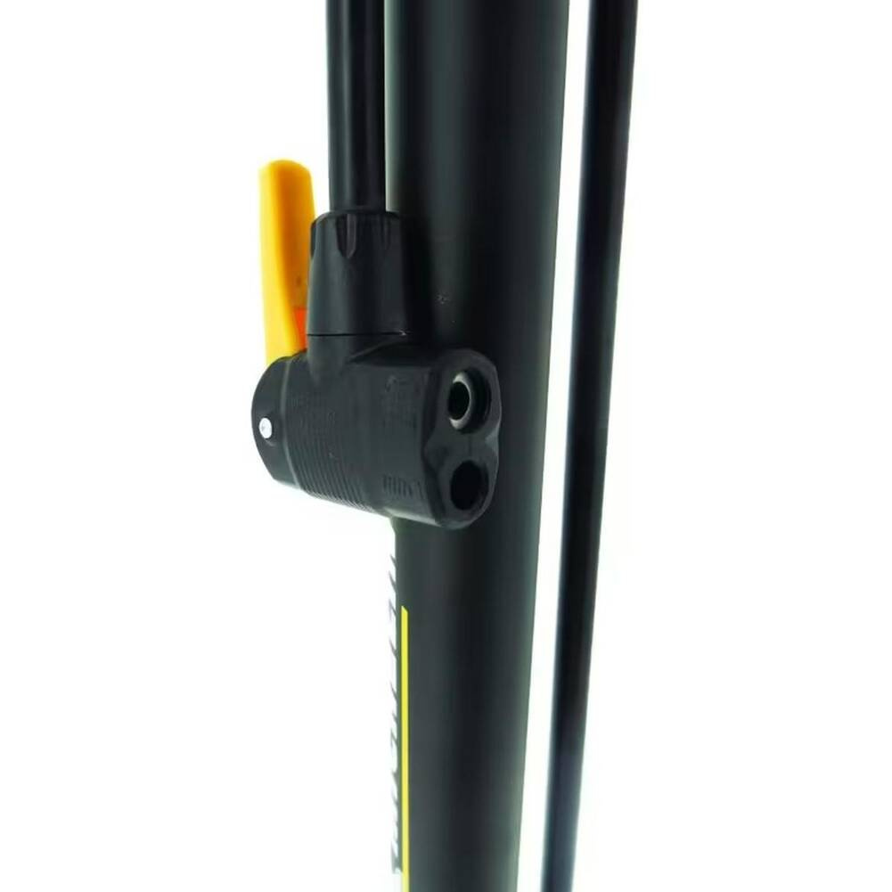 "Stalowa pompa z nóżką i manometrem Stalowa pompa ze stopą i dużym manometrem - średnica 4''/10 cm. Stalowa rurka i podwójna stopka. Uchwyt z polipropylenu. Ochrona ABS na manometrze. Łatwość użycia : opatentowana głowica trójzaworowa z dźwignią blokującą. Kompatybilne zawory : Schrader, Presta i Dunlop. Połączenie klipsowe. Zestaw dysz do pompowania w komplecie : igła do kulki i dysza do dętki. Maksymalne ciśnienie - 11 barów / 160 PSI. "