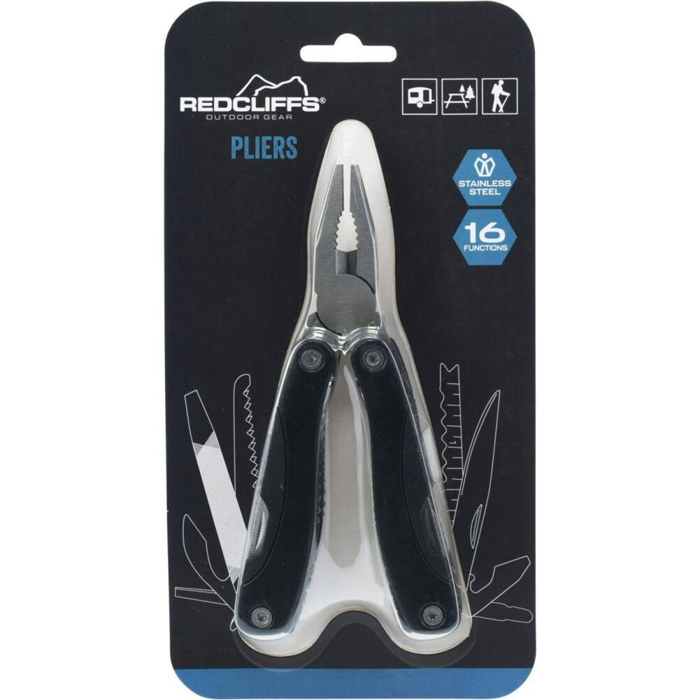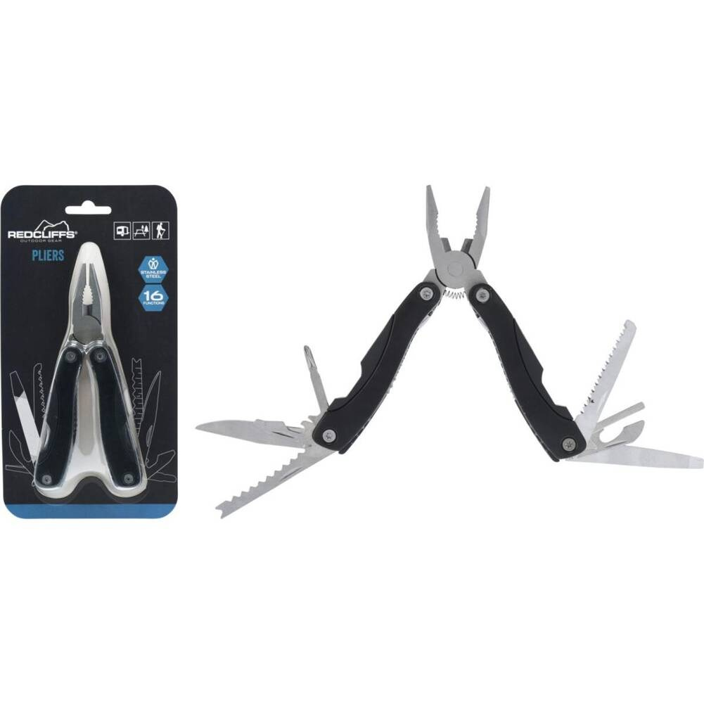 SZCZYPCE WIELONARZĘDZIOWE 16 FUNKCJI, STAL NIERDZEWNA, ROZMIAR ROZŁOŻONY 15,5CM, ROZMIAR ZŁOŻONY 10X4,5X2CM, Z CZARNYM UCHWYTEM,