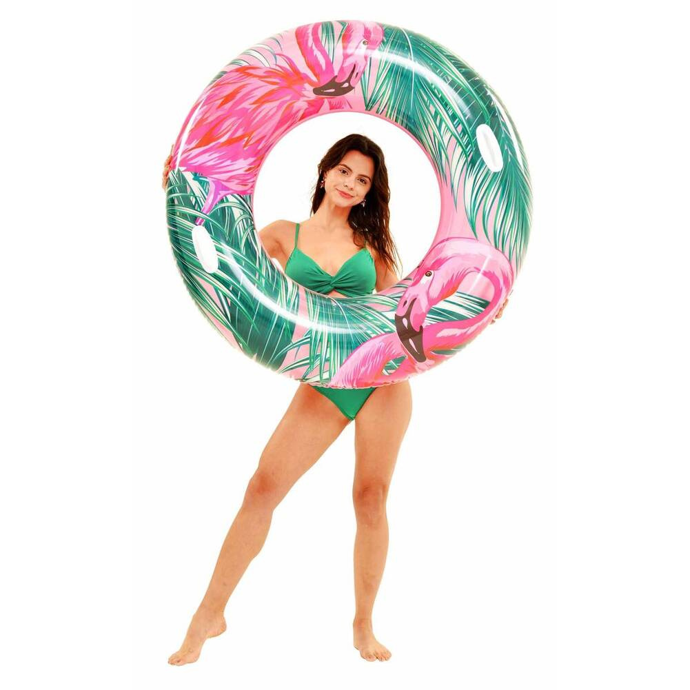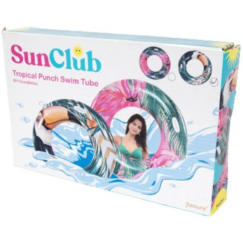 Ten produkt od Sun Club świetnie sprawdzi się na plaży czy w przydomowym basenie, zapewniając wysoki komfort wypoczynku podczas letniego urlopu. Wykonany z grubego i mocnego 0,22 mm winylu zapewni wytrzymałość i co najważniejsze, odporność na promieniowanie UV i chemię basenową. To duże i oryginalne nadmuchane koło do pływania o średnicy zewnętrznej ok.: 100 cm zrobi wrażenie na każdym wczasowiczu! Dwa uchwyty ułatwiają przenoszenia i wyjmowanie z wody oraz utrzymanie równowagi podczas pływania w wodzie.