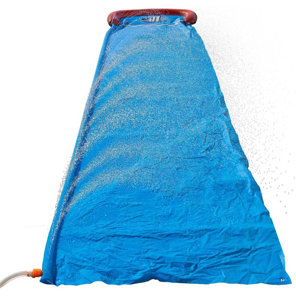 Łatwy montaż pozwoli Ci na szybkie rozłożenie jej w ogrodzie lub na działce. Po podłączeniu do węża ogrodowego pokryjesz ślizg wodą na całej jego długości. Wymiar zjeżdżalni pozwoli na długi ślizg w orzeźwiającej wodzie, a miękki kołnierz zapewni miękkie lądowanie.