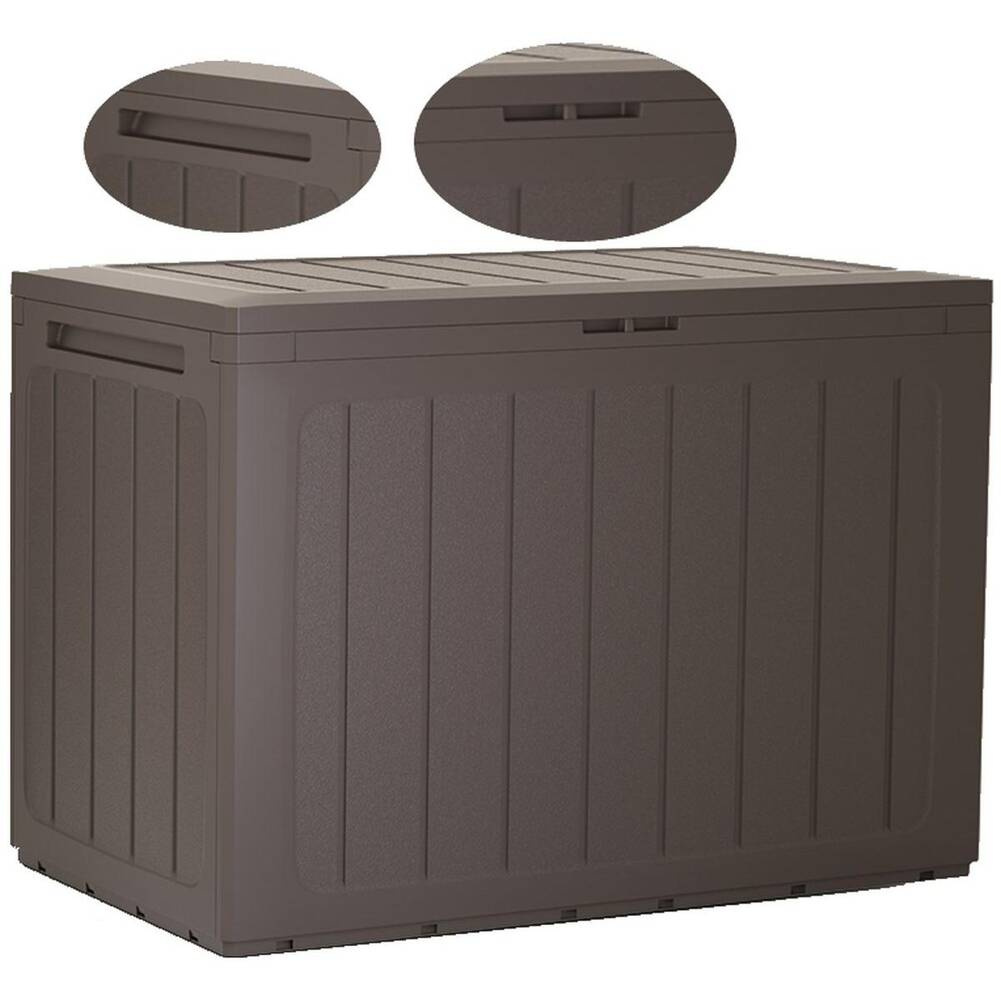 Elegancko wykończona SKRZYNIA Z SERII BOARDEBOX doskonale nada się do przechowywania Twoich poduszek, koców, narzędzi, zabawek ogrodowych czy innych przedmiotów, zabezpieczając je przed kurzem czy deszczem.