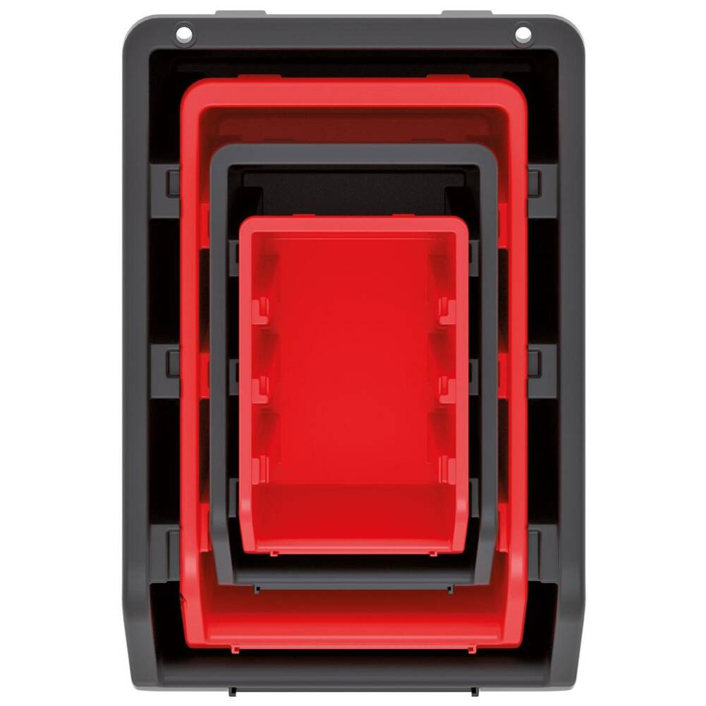 Jest uniwersalny, zawiera 16 pojemników o różnych pojemnościach w dwóch kolorach i 5 listew montażowych na których zawiesisz pojemniki w dowolnej konfiguracji.