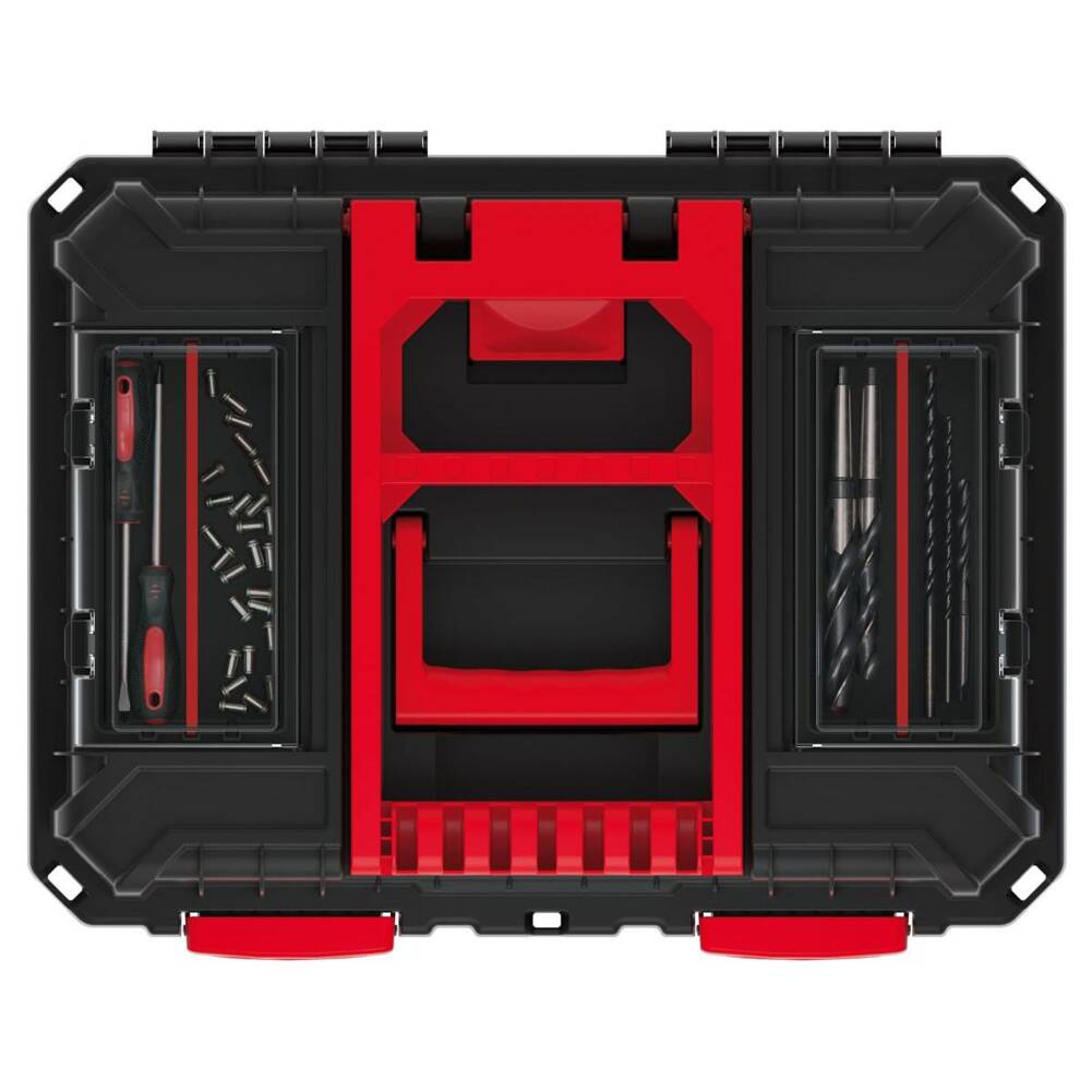 Jest bardzo praktyczna, posiada głębokie nosidło narzędziowe, a w pokrywach zostały wbudowane specjalne organizery wyposażone w wyjmowane przegrody i kubeczki ułatwiające przechowywanie drobnych elementów. Pokrywy organizerów są przeźroczyste, wykonane z wytrzymałego poliwęglanu.
