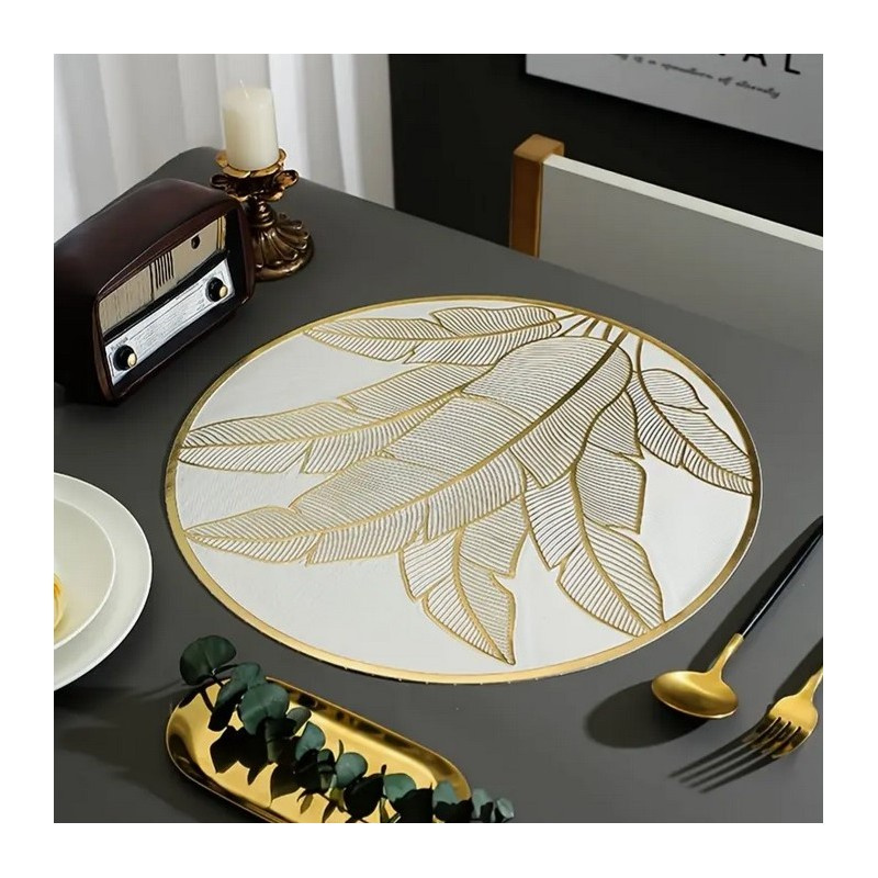 Duża i efektowna podkładka na stół w kolorze złota - Wymiary - średnica 38 cm