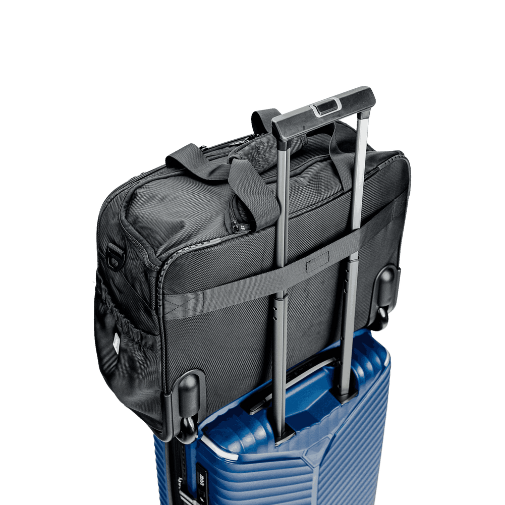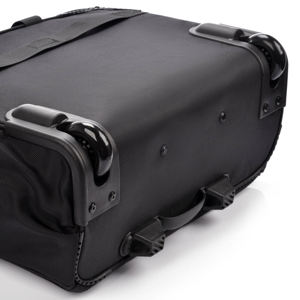 W wyposażeniu torby znajduje się również wysuwana teleskopowa rączka na podwójnym stelażu, która sprzyja wygodnemu prowadzeniu. Po złożeniu można ją schować w specjalnej kieszonce. Na tylnej ścianie został zaprojektowany specjalny uchwyt do zaczepienia na walizkę, który sprawia, że transport torby nie będzie stanowił dużego wysiłku, niezależnie od obciążenia.
