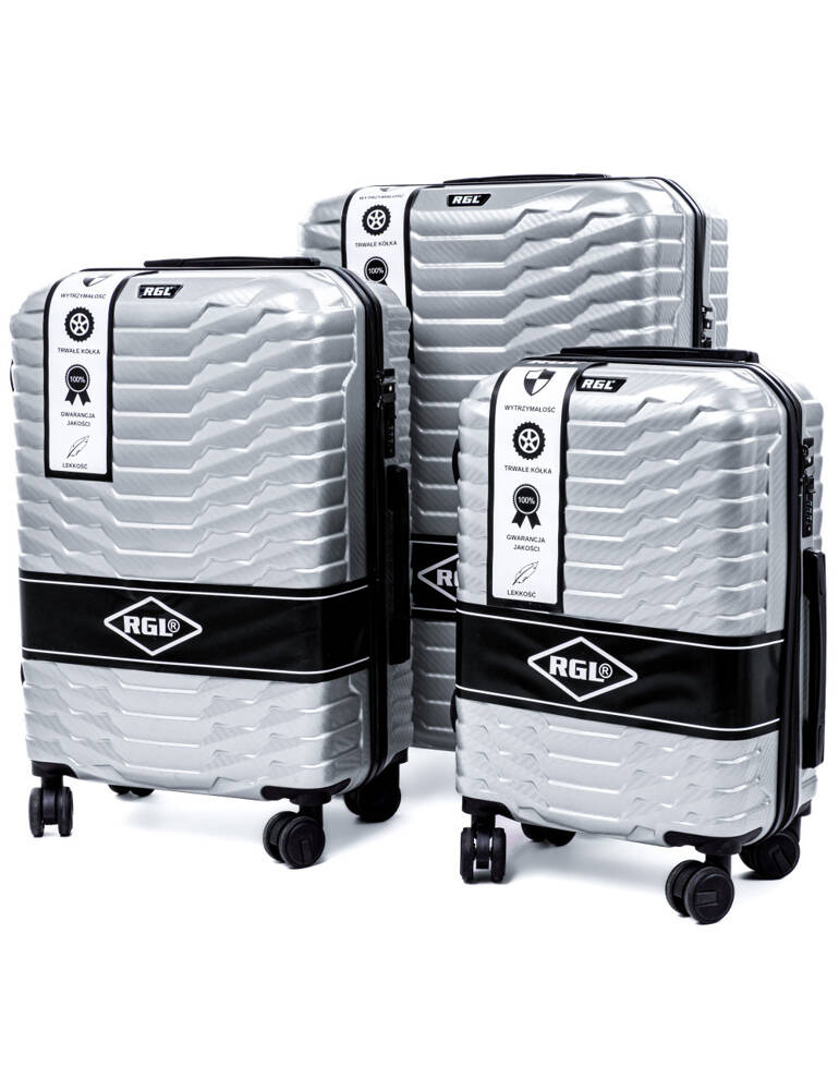 Solidne walizki Stworzone z policarbonu. Walizki wyposażone są w cztery łożyskowane kółka, wysuwany uchwyt oraz dwie gumowe rączki ułatwiające przenoszenie bagażu. Ponadto, zabezpieczenie w postaci zamka szyfrowego uniemożliwiającego osobom niepożądanym dostęp do wnętrza. W dużej oraz średniej walizce dwa uchwyty do przenoszenia bagażu, w małej- jeden znajdujący się u góry.