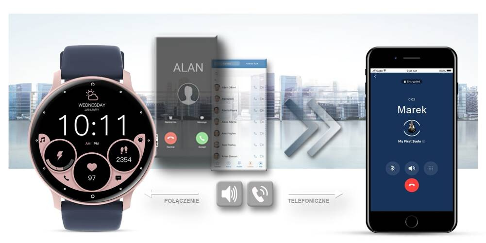 Po sparowaniu smartwatcha z twoim smartfonem, możesz bezproblemowo odbierać i wykonywać połączenia telefoniczne. Wbudowany głośnik oraz mikrofon pozwala rozmawiać bez konieczności wyciągania telefonu komórkowego.
