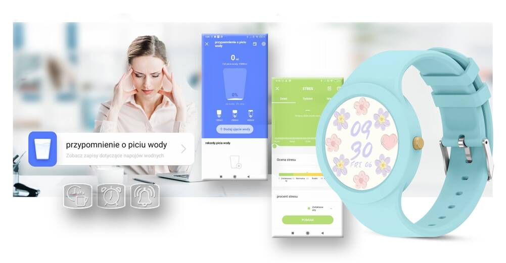 Smartwatch idealny dla aktywnych osób, którzy czas wolny spędzają na uprawianiu sportu i dbanie o zdrowy tryb życia. Ten model posiada wiele różnych trybów sportowych: koszykówka, rower, bieganie, chodzenie, skakanie, piłka nożna i badminton, które pozwolą w łatwy sposób kontrolować trening lub zabawę sportową. Pozwoli ci zaplanować i kontrolować czas, dystans, spalanie kalorii i efekt treningu.