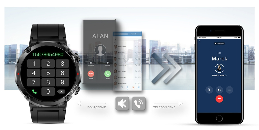Oprócz tego model ten posiada książkę telefoniczną oraz cyfrową klawiaturę. W ten sposób możesz wybierać numer do którego chcesz dzwonić z własnego smartwatcha.