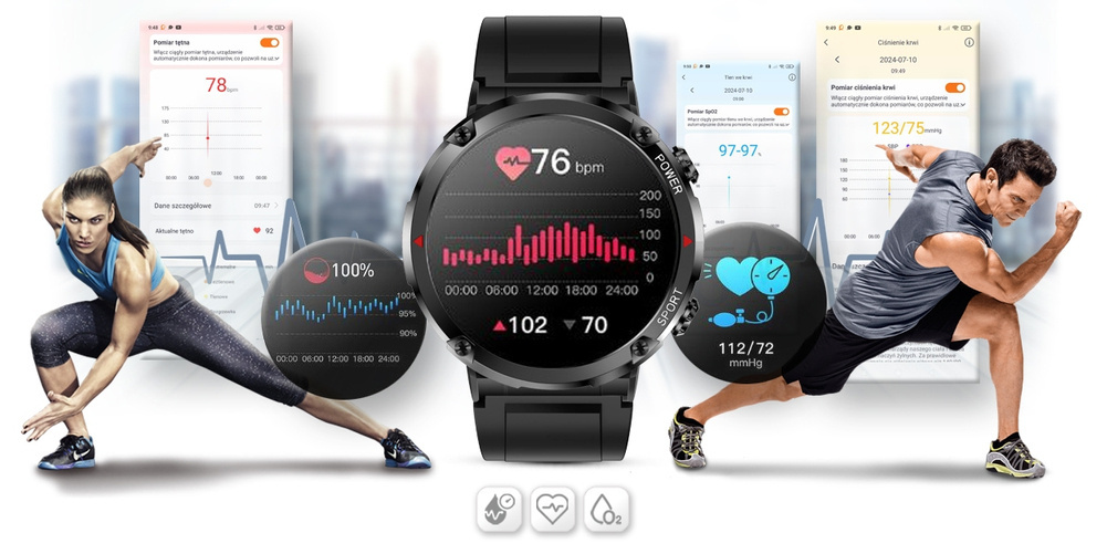 Dzięki sensorowi możesz w każdej chwili zmierzyć lub wykonać pomiar: ciśnienie krwi, tętno lub saturację - zawartość tlenu we krwi w swoim organizmie. Kontroluj wyniki podczas każdej aktywności fizycznej. Niezależnie czy jeździsz na rowerze, biegasz, czy też po prostu jesteś w pracy lub odpoczywasz. Twój smartwatch GRAVITY stanie się osobistym asystentem dbającym o twoje zdrowie każdego dnia.