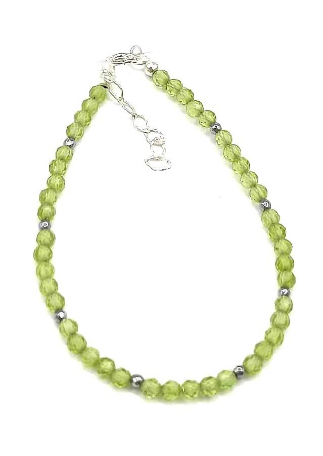 Bransoletka wykonana ze srebra próby 925,rodowanego Kamień: Oliwin+ Hematyt Rozmiar kamienia: 3/2 mm Długość: 17,5 cm Zapięcie: federing Bransoletka może być