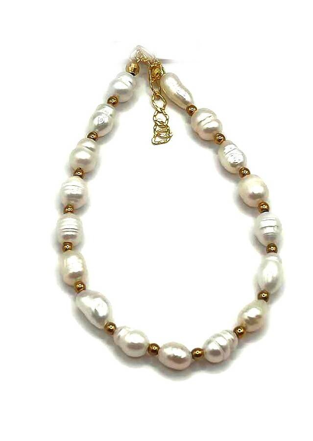 Bransoletka wykonana ze srebra próby 925,złoconego 24 karatowym, żółtym złotem Kamień: Perła+ Hematyt Rozmiar kamienia: ok.8-2 mm Długość: 17,5 cm