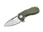 W pełni rozwinięte, zdefiniowane, dynamiczne. Podobnie jak tytułowa kijanka do żaby, pomysł kijanki Magnum rozwinął się w wszechstronny scyzoryk do wszystkich możliwych codziennych zadań związanych z cięciem. Potężne ostrze typu spear point 440A z ricasso, jimpingami i dyskretnym wykończeniem typu stonewash naprawdę sprawdza się w zadaniach EDC. Tylko płynna praca ostrza z łożyskami kulkowymi i rączka z G10 w kolorze żabiej zieleni z zapierającą dech w piersiach, antypoślizgową fakturą fali świadczą o wodnym pochodzeniu kijanki. Alternatywą dla flippera jest możliwość otwarcia noża poprzez duży otwór na kciuk, natomiast liner lock niezawodnie zabezpiecza ostrze. Pomarańczowa podkładka dystansowa ze zintegrowanym otworem na smycz zapewnia udany kontrast z rączką i stanowi idealne uzupełnienie dwustronnego klipsa do głębokiego przenoszenia (przechylanie do góry). Metamorfoza może być taka Magnum!