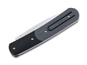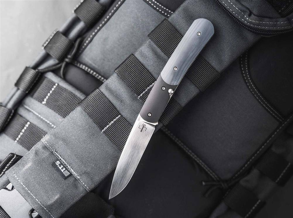 Stan Moizis rozpakowuje kierowcę i składa jasne oświadczenie na równi z Boker Plus DogLeg Auto. Czwórkowe żelazo noża automatycznego ustępuje miejsca ostrzu D2 Droppoint z filigranowym wykończeniem, dzięki czemu cięcie jest jedynie formalnością w najprawdziwszym tego słowa znaczeniu. Scyzoryk prezentuje dobre maniery także poza klubem Boker dzięki swojej smukłej sylwetce, którą pięknie podkreśla dwuczęściowa rękojeść wykonana z czarnej stali nierdzewnej. We wgłębieniu w przednim podparciu znajduje się przycisk otwierania i odblokowywania noża, który nawiązuje do tytułowej krzywizny pola golfowego i przypomina psią nogę. Dzięki dyskretnemu klipsowi z drutu (przechylanemu do góry) i szlachetnemu filcowemu etui, DogLeg Auto potrafi wbić się w dziurę w jednym prosto w centrum nagród entuzjastycznych miłośników noży.