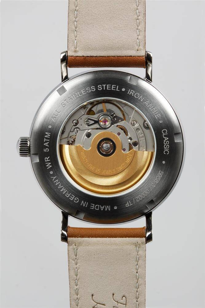 ETA 2824-2/ SW 200, szkło mineralne, dekiel ze szkłem mineralnym, tarcza niebieska, wskazówki srebrne, koperta ze stali nierdzewnej, średnica 41 mm, wysokość 11 mm, masa ok. 61 g, WR 5 ATM, pasek skórzany brązowy