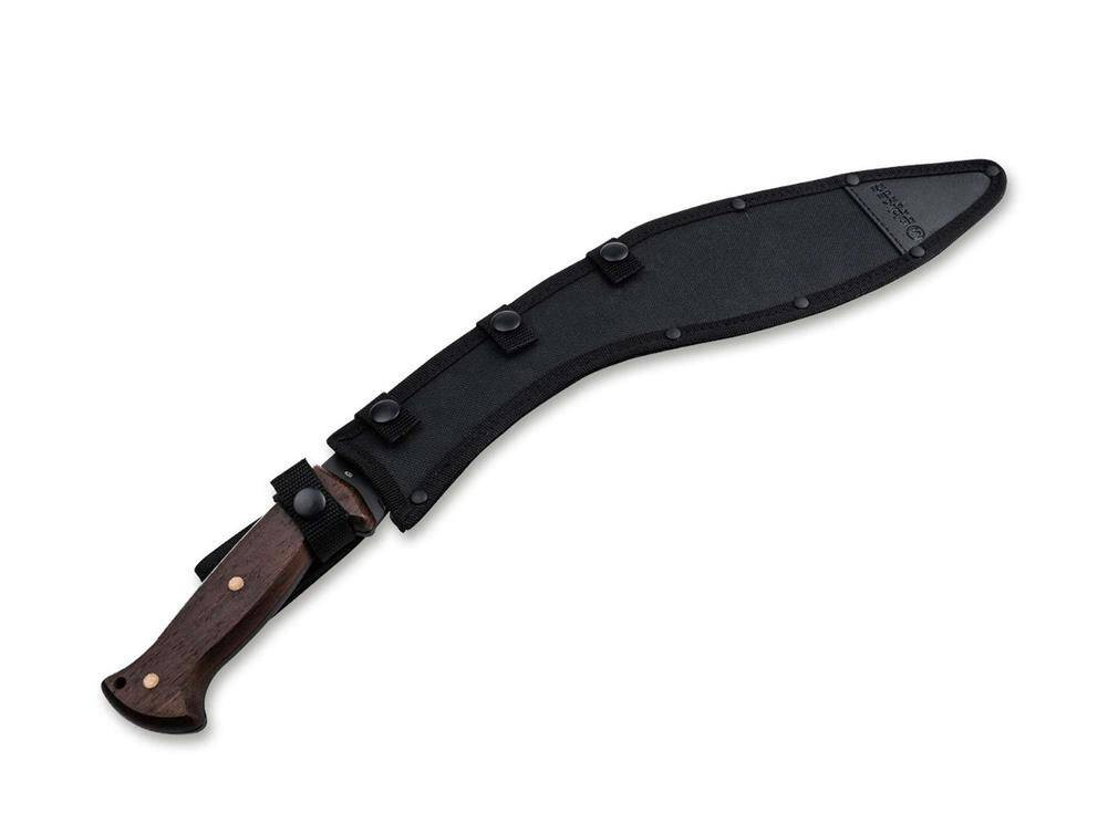 Bushcrafting to przede wszystkim mocne nerwy i odpowiedni sprzęt. Maczeta Magnum Kurki eliminuje wszelkie zmartwienia związane z pokonywaniem gęstych zarośli. Cienka i elastyczna klinga 420 posiada czarną powłokę, która przede wszystkim chroni przed zarysowaniami i korozją, ale pełni także funkcję taktycznego kamuflażu. Oprócz przecinania sobie drogi w dżungli, maczeta o tradycyjnym nepalskim kształcie ostrza idealnie nadaje się do rąbania drobnego drewna i podpałki na kolejne ognisko. Drewniane łuski rękojeści mają przyjemny kształt i umożliwiają pracę bez wysiłku. Ozdobne akcenty stanowią trzy mosiężne ćwieki. W zestawie otwór na smycz i dopasowana nylonowa osłona. Ze względu na cienkie i elastyczne ostrze maczeta nie nadaje się do pałkowania ani podważania!