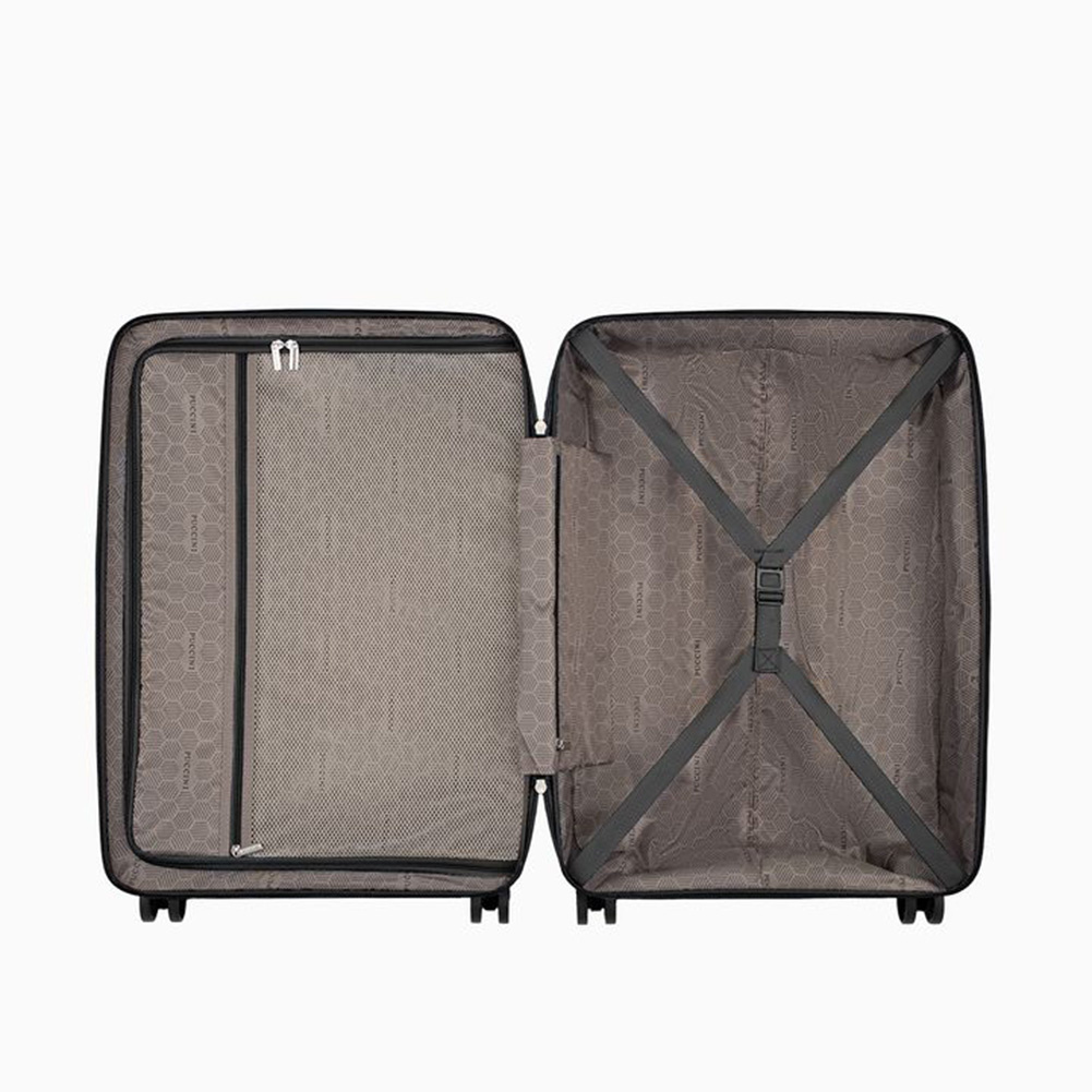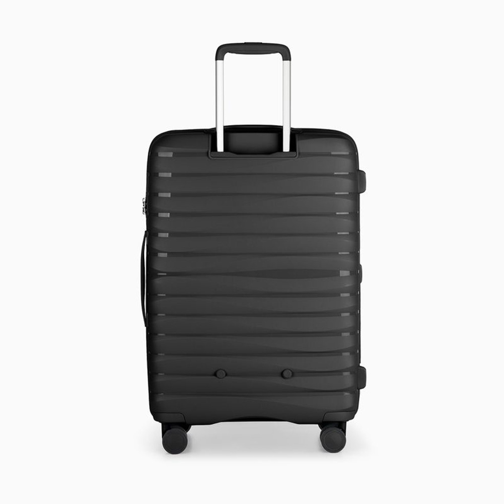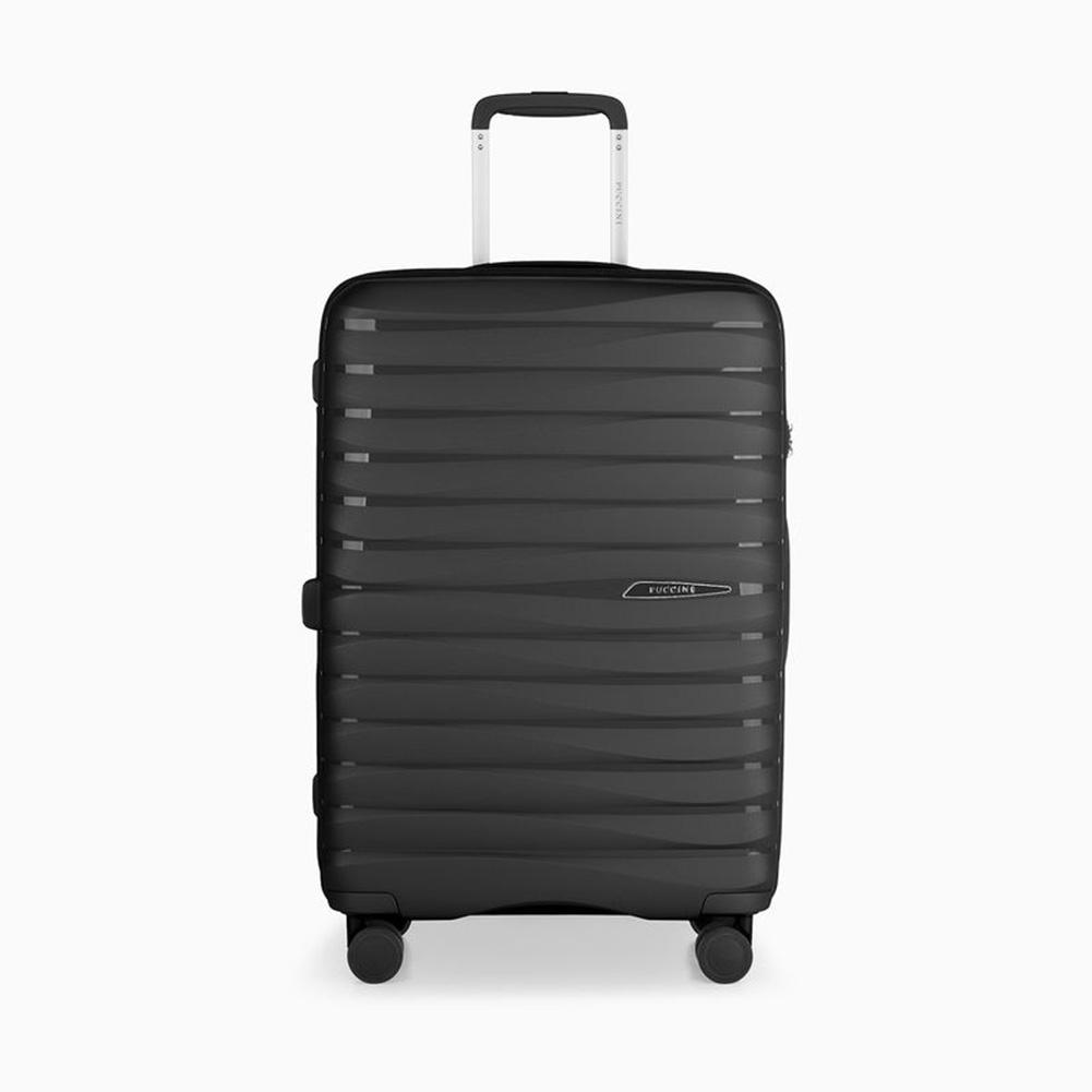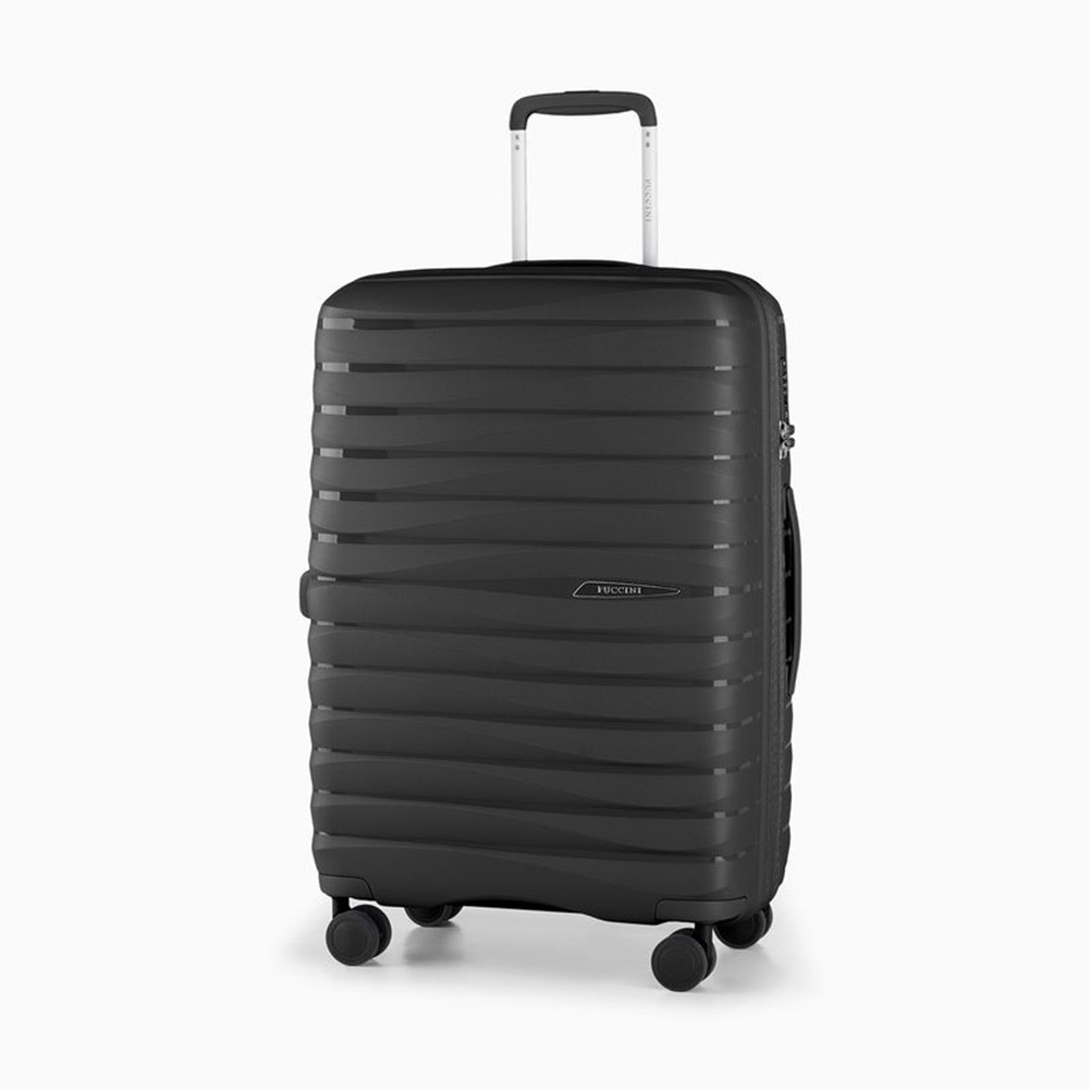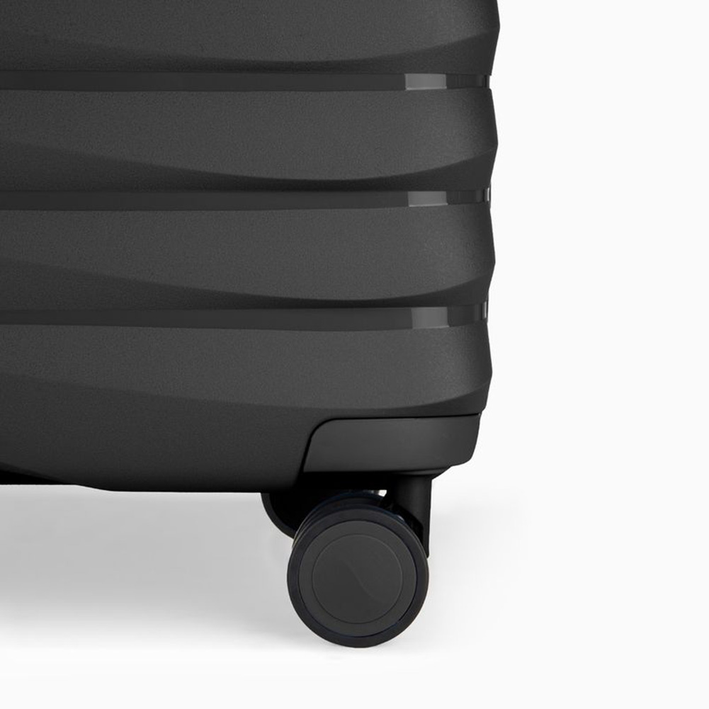 - walizka twarda wykonana z polipropylenu, materiału charakteryzującego się super lekką wagą i niezwykłą wytrzymałością