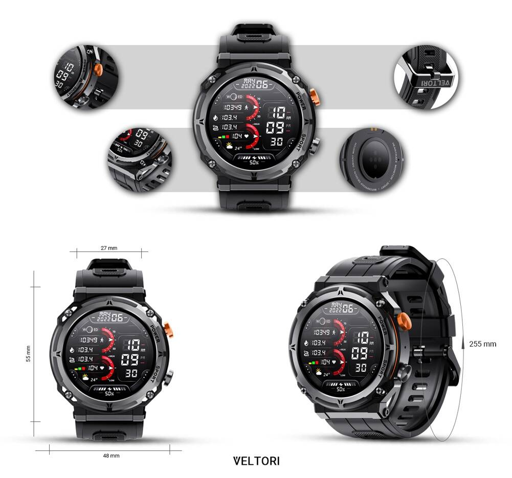 Dzięki sensorowi możesz w każdej chwili zmierzyć lub wykonać pomiar: ciśnienie krwi, tętno lub saturację - zawartość tlenu we krwi w swoim organizmie. Kontroluj wyniki podczas każdej aktywności fizycznej. Niezależnie czy jeździsz na rowerze, biegasz, czy też po prostu jesteś w pracy lub odpoczywasz. Twój smartwatch Veltori stanie się osobistym asystentem dbającym o twoje zdrowie każdego dnia.