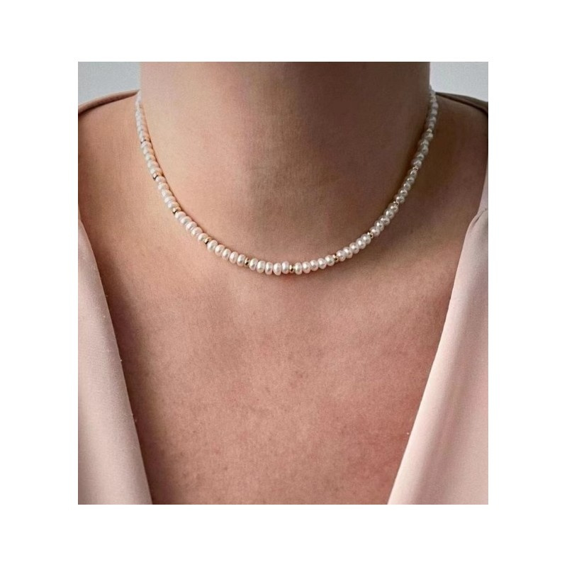 Naszyjnik perełki stal szlachetna pozłacana 14k złotem NST2107
