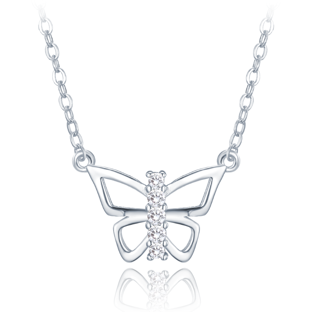 Naszyjnik jest ozdobiony błyszczącymi cyrkoniami sześciennymi na grzbiecie i głowie motyla.