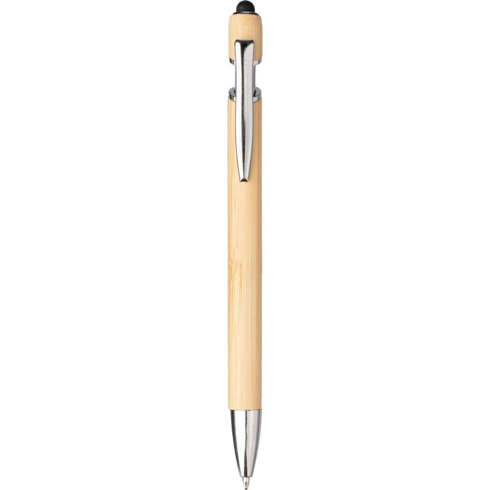Długopis z metalowym klipem, można go przyczepić do notatnika lub koszuli, posiada czarny wkład, produkt wykonany z bambusa