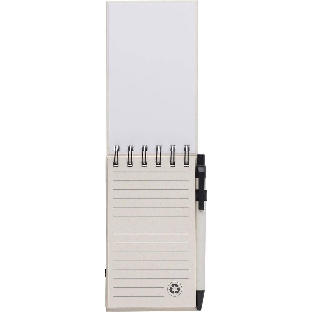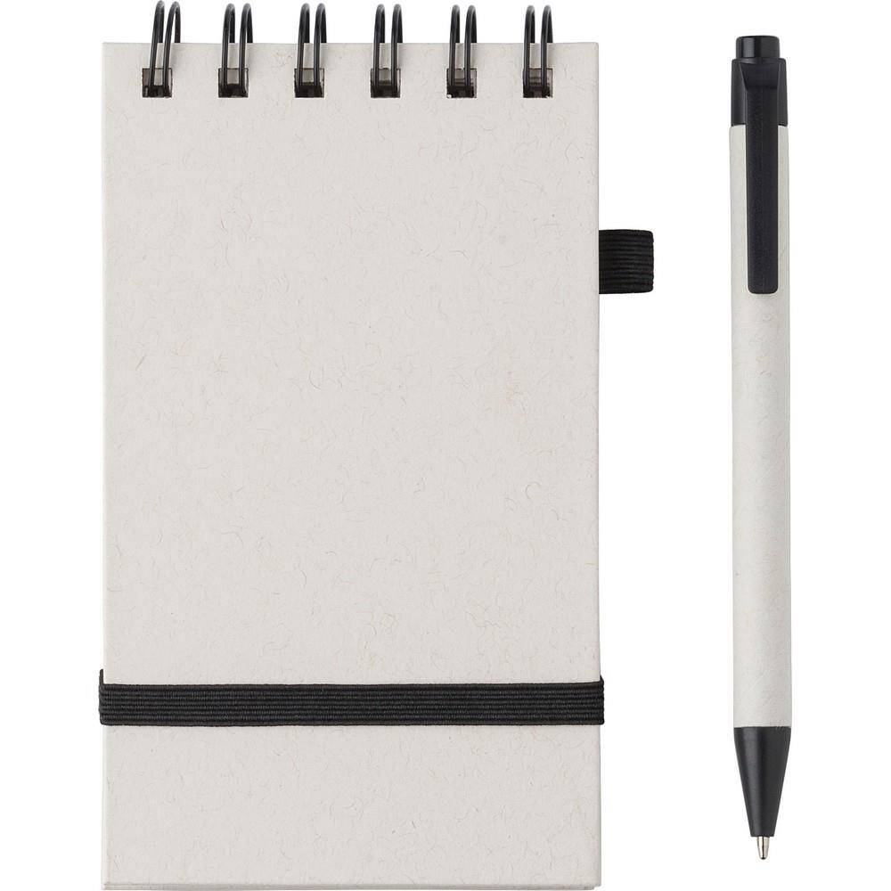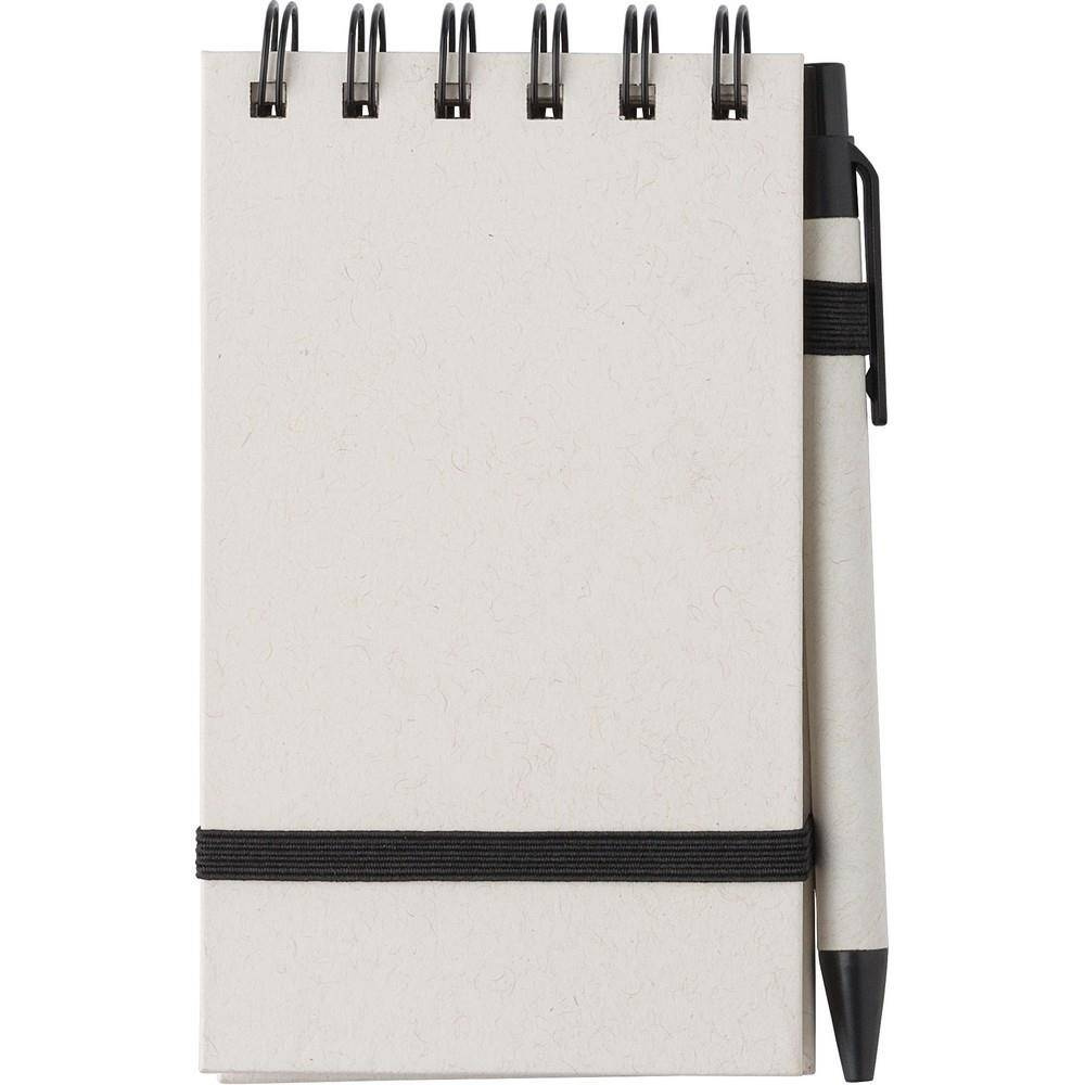 Notatnik A6 z kartonu po mleku, 70 kartek, elastyczna opaska do zamykania, długopis z niebieskim wkładem