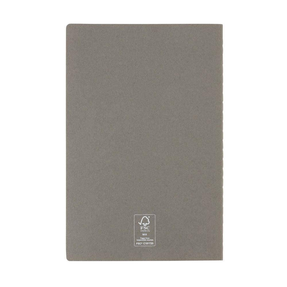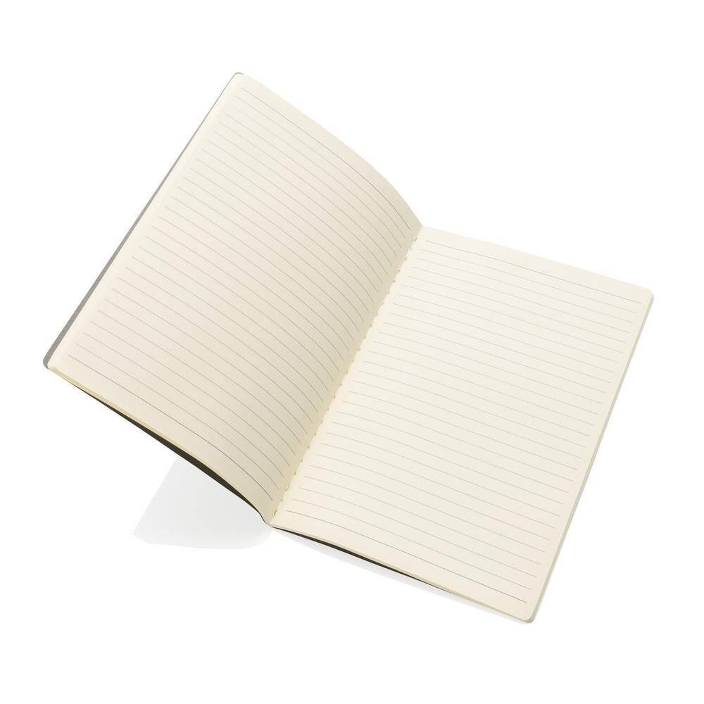 Notatnik A5, (46 kremowych kartek w linie), miękka okładka, okładka oraz strony wewnętrzne posiadają certyfikat FSC® (Forest Stewardship Council), ślad węglowy produktu: 0,25 kg CO2
