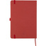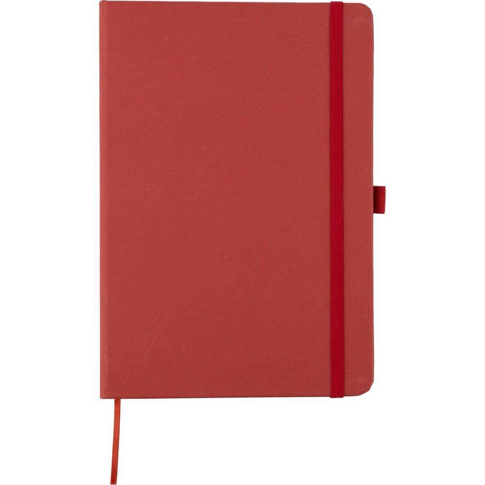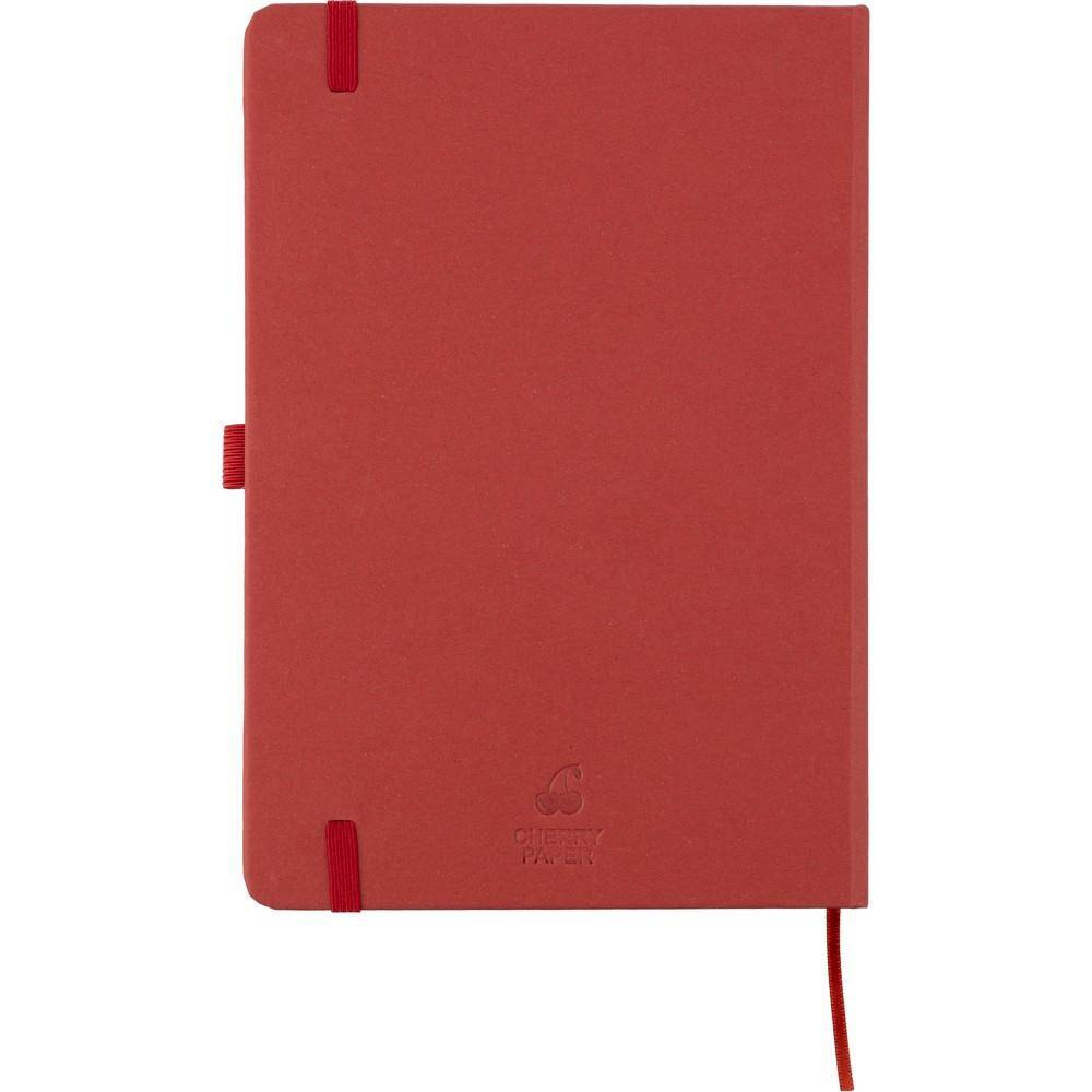 Notatnik w formacie ok. A5, posiada 80 stron w linie drukowanych tuszem sojowym, tasiemka zakładkowa umożliwia wygodne zaznaczanie ostatniej strony lub ważniejszych notatek, dodatkowe zamknięcie w postaci dopasowanej kolorystycznie elastycznej opaski, zmieści się do szkolnego plecaka, notatnik posiada papierową okładkę Favini pochodzącą z Włoch, ikona surowca na produkcie, produkt wykonany z kartonu i resztek produkcyjnych (04 - lawenda, 05 - wiśnia, 06 - cytrusy, 18 - migdały, 25- winogrona) oraz papieru 70 g/m²